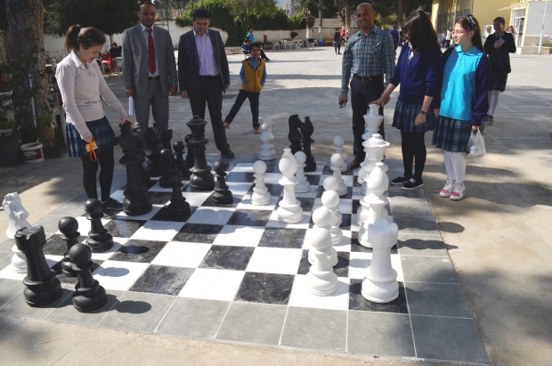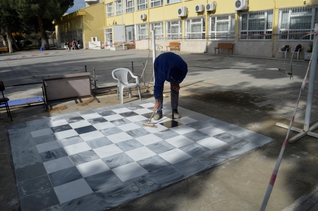 Belediyeden okul bahçesine satranç alanı