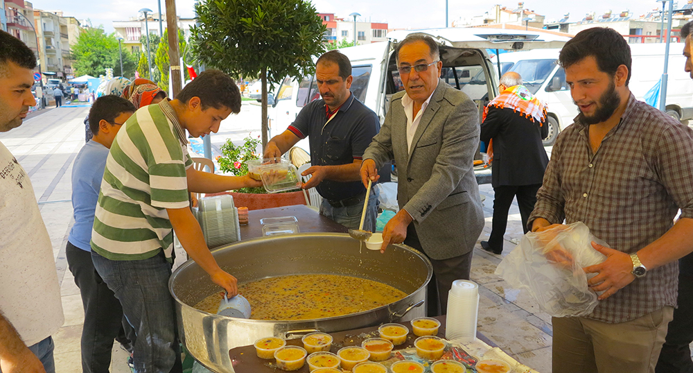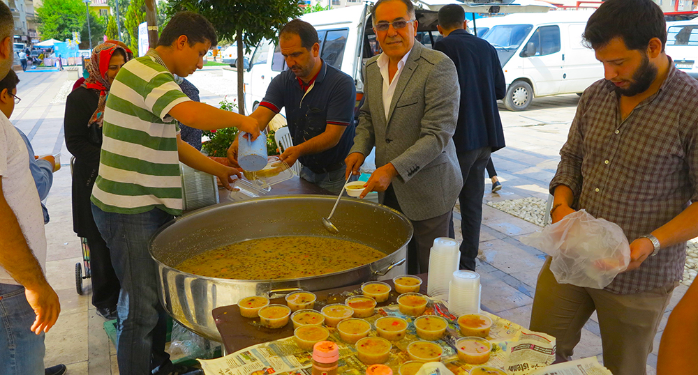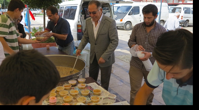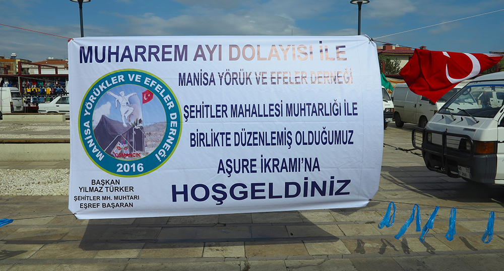 Muharrem ayı dolasıyla Manisa Yörük ve Efeler Derneği ve Turgutlu Şehitler Mahallesi Muhtarlığının müşterek düzenlemiş olduğu aşure ikramı bugün yapıldı.Turgutlu Belediyesi Cumartesi Pazarı bahçesinde yapılan aşure ikramı etkinliği saat 12.00 de başladı.Manisa Yörük ve Efeler Derneği Yılmaz Türker ve Şehitler Mahallesi Muhtarı Eşref Başaran ilk kepçe aşureyi konuklara ikram etti.CHP Turgutlu İlçe Başkanı Erk Kayabaş, Turgutlu Tuhafiyeciler Oda Başkanı Murat Çiçekçi ve çok sayıda konuk katıldı.Şehitler Mahallesi Muhtarı Eşref Başaran. “ Bu yıl bunu ikincisini yapıyoruz. Bundan sonra geleneksel hale getirmek istiyoruz. Bu ikram etkinliğine katılan tük konuklarımıza teşekkür ediyoruz. Allah Razı olsun ”diye konuştu. 1000 kişilik aşure kısa sürede tükendiği gözlendi. Doğan ÇİZMECİ