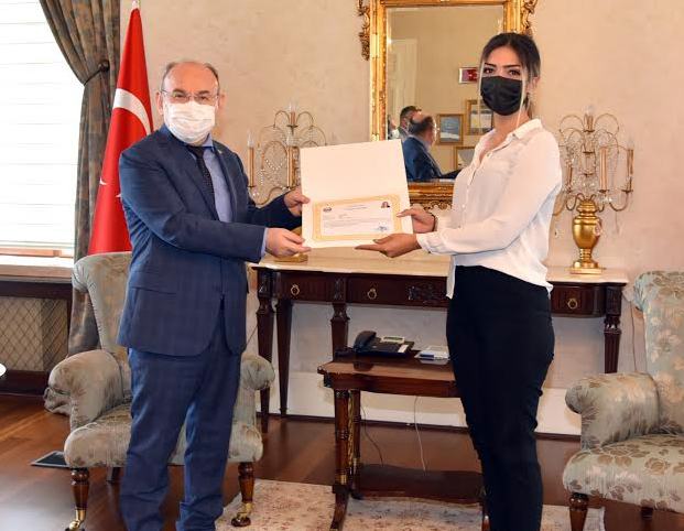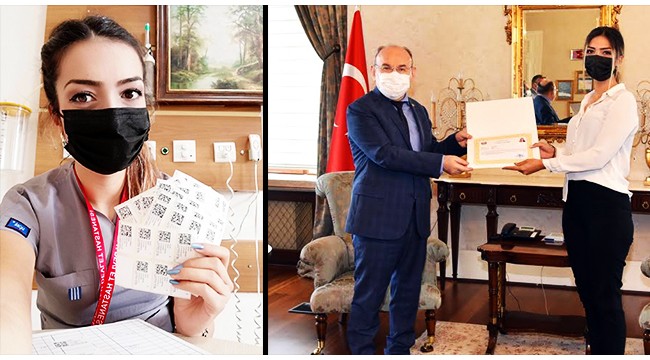Bir günde 444 aşı yapan ‘Dilan Hemşire’ye başarı belgesiBİR günde 444 aşı yapan Turgutlu Devlet Hastanesinde görevli Dilan Hemşire’ye, Manisa Valisi Yaşar Karadeniz tarafından ‘başarı belgesi’ takdim edildi.Ülke genelinde Kovid-19 salgınıyla mücadele kapsamında aşılama programı başarıyla devam ederken, Sosyal Sigortalar Kurumuna kayıtlı tüm çalışanlar, devlet memurları ve 30 yaşının üzerindeki tüm vatandaşların programa dahil edilmesiyle aşılama önemli bir ivme kazandı. Bu kapsamda devam eden aşılama çalışmalarında sağlık çalışanları da büyük bir özveriyle çalışıyor. Bir günde 444 aşı (74 flakon) yapan Turgutlu Devlet Hastanesi’nde görevli hemşire Dilan Poliçe, Manisa Valisi Yaşar Karadeniz tarafından ağırlandı. Ziyarette Manisa İl Sağlık Müdürü Doç. Dr. M.Emre Kuş ve Turgutlu Devlet Hastanesi Başhekimi Uzm. Dr. Ümit Aksoy da bulundu.Başarı belgesini aldığı Vali Karadeniz’e teşekkür eden Hemşire Dilan Poliçe, gerçekleşen başarının bir ekip çalışması ürünü olduğunu ve arkadaşlarının desteği ile bu başarıya ulaştığını ifade etti.Kovid-19 salgınıyla mücadelede aşılamanın tüm hızıyla devam ettiğini ve 30 yaşın üzerinde ki tüm vatandaşların Sağlık Bakanlığı tarafından aşılama sistemine tanımlandığını belirten İl Sağlık Müdürü Doç. Dr. M.Emre Kuş, hızlı bir şekilde toplumsal bağışıklama düzeyini arttırarak pandemiden kurtulmayı ümit ettiklerini ifade etti.Sağlık çalışanlarının Kovid-19 salgınıyla mücadelede en ön saflarda görev yaptığını belirten Vali Karadeniz, Haziran ayı sonundan itibaren toplumumuzun önemli bir kısmının aşılanmasının bitmiş olmasını beklediklerini, Temmuz Ayında da bir çok alanda rahat bir yaşam ümit ettiklerini ifade ederek “Aşılama çalışmasında görev alan tüm sağlık personelimizi sizin şahsınızda tebrik ediyorum. Aşılama sürecinin sağlıklı yürümesinde hem sağlık kurumlarından hem diğer kurumlardan katkı sunan personelimize de teşekkür ediyorum” dedi.