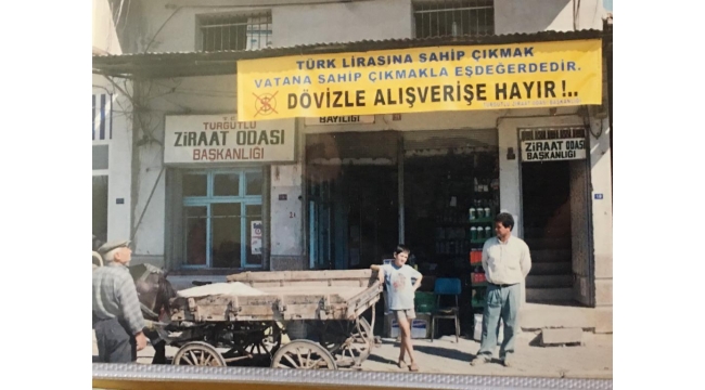 Turgutlu Ziraat OdasıTurgutlu ilçesinin önemli meslek odalarından olan Ziraat Odası üzümcü sokakta hizmet veriyordu. 2002 yılında Atatürk Bulvarındaki kendi işyerine taşındı. Ziraat odasına gelen çiftçi satın aldığı ilaçları şimdi sayıları oldukça azalan at arabasına yüklüyordu. Çocuk da Gazeteci Tuncel Yılmaz’ın objektifine poz veriyor. DOĞAN ÇİZMECİ