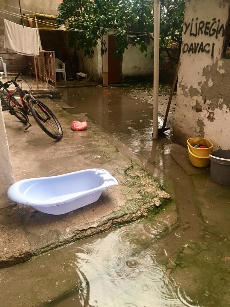 “Bu bizim kaderimiz mi ?”Tıkanan kanalizasyonlar nedeniyle evlere su bastıManisa’nın Turgutlu ilçesinde, dün akşamdan beri aralıklı yağan sağanak, hayatı olumsuz etkilerken kanalizasyonlar taştı ,bazı evlere su bastı. Turgutlu ilçesinde sağanak bugün etkili olurken, taşan kanalizasyonlar nedeniyle cadde ve sokaklar adeta göle döndü.Yağmur nedeniyle Turgutlu’nun kenar mahallerinden Bozkurt Mahallesi Yorulmaz sokakta taşan kanalizasyonlar nedeniyle evlerin zemin katına su bastı. Manisa Su ve Kanalizasyon İdaresine bağlı vidanjör tıkanan kanalizasyonları açtı. Yorulma Sokak sakinlerinden Aslı Çelik : “ Yağan yağmur nedeniyle kanalizasyon tıkalı sular evimize giriyor. Ev sular içinde Bu bizim kaderimiz mi ? Her yağmur yağışında evimize su basıyor. Ne olacak bu sokağın hali ?“diye endişelerini dile getirdi. Bozkurt Mahallesi Muhtarı Hüsni Nişli : “ Konuyu öncesinden belediye aktardık. Ama ilgilenen olmadı. Üzüm sokakla kiraz sokağın kesiştiği yer de tümsek var. Yağan yağmur suyu her seferinde yan sokaktan Yorulmaz Sokağa akarak zemin katlara su basıyor. Mümkünse bir çözüm istiyoruz “dedi. Hayatı olumsuz etkileyen yağış nedeniyle, itfaiye ekipleri de bölgelerde alarm durumda bekliyor. Doğan ÇİZMECİ/TURGUTLU