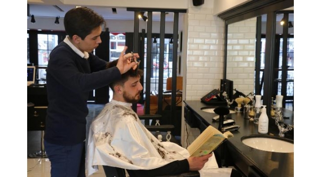 MANİSA'nın Şehzadeler ilçesinde hizmet veren erkek kuaförü salonu işletmecisi Mustafa Atadil (37), müşterilerinin cep telefonlarını tıraş süresi boyunca rafa koyuyor. Farkındalık yaratmak isteyen Atadil, kendi imkanlarıyla oluşturduğu kitaplığından müşterilerine kitap seçtirerek bekledikleri sürede kitap okumaya teşvik ediyor.Avni Gemicioğlu Caddesi üzerinde hizmet veren erkek kuaförü salonu işletmecisi, evli ve bir çocuk babası Mustafa Atadil, kitap okuma farkındalığı yaratmak için kolları sıvadı. Kafe konseptli dükkanında 3 ay önce 'Müşterilerimiz okuyor' ismini verdiği projesini başlatan 20 yıllık berber Atadil, müşterilerinin cep telefonlarını alarak dolapların bir rafında muhafaza ediyor. Müşterilerini ise kendi imkanlarıyla oluşturduğu, içerisinde yaklaşık 100 kitabın bulunduğu kitaplığına götürerek kitap seçtiriyor. İş yerinde geçen zaman boyunca, müşteriler kitaplarını okuyabiliyor. İsteyen müşteri ise kitabı eve götürüp, bir sonraki tıraşa gelirken beraberinde getirebiliyor.KİTAP OKUMA ORANININ ARTMASINI İSTEDİMüşterilerinin uygulamadan memnun olduğunu belirten Atadil, "Ben kendim kitap okumayı, araştırmayı çok seven birisiyim. Müşterilerimiz dükkana geldiğinde sıra beklerken, tıraş olurken sürekli telefonla ilgileniyorlar. Onları teknolojiden, sosyal medyadan bir nebze de olsa uzak tutmak amacıyla bir kitaplık oluşturdum. Dükkanıma gelen müşterilerimizin kendi rızalarıyla cep telefonlarını alıyorum, rafa koyuyorum. Projemden bahsediyorum. Kitaplığıma götürüyorum müşterilerimi. Kitaplarını seçiyorlar. Daha sonra da gerek sıra beklerlerken, gerek tıraş olurlarken kitap okuyorlar. Her ne kadar ilk başlarda yadırgasalar da artık sistem oturdu" dedi. Kitap okuma oranının artmasına yönelik bu projeyi hayata geçirdiğini ifade eden Atadil, "Hepimizin bildiği gibi ülkemizde kitap okuma oranı dünya seviyesine göre düşük sıralarda. Kitap okumaya karşı bilinçlenmek, biraz daha kitap okuma oranının artmasına vesile olmak için böyle bir projeyi hayata geçirdim. Artık müşterilerimiz dükkana gelir gelmez çay- kahve eşliğinde kitaplarını okuyor. Tıraş sonrası da gayet mutlu bir şekilde dükkandan ayrılıyorlar" diye konuştu.MÜŞTERİLERDEN TAM NOTMüşterilerden Ziraat Mühendisi Velican Bakırlı (26), "Bu uygulama bence gayet hoş. Artık alıştık. Dükkana girer girmez telefonumuzu kendisi istemeden biz veriyoruz. Direkt kitabımı alıyorum. Ülkemizde okuma oranı zaten epey düşük seviyelerde. Bu tür uygulamaların artması gerekiyor bence. Hem bir süre telefondan uzaklaşmış oluyoruz hem de kafamızı dinlemiş oluyoruz. Bu uygulamaya diğer esnafın da katkı sağlamasını beklerim" dedi. Bir kafede barista olan Burak Gülçin (23) ise, "Ben bu uygulamayla ilk defa karşılaştım. Bu kuaför salonuna da ilk kez geldim. Bence gayet başarılı bir uygulama" dedi.DHA