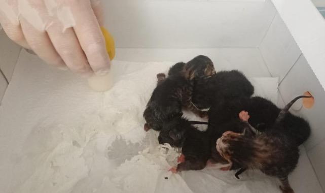Sokakta bulduğu 6 kedi yavrusuna sahip çıkarak kendi elleriyle sütle besleyerek hayatta tutmaya çalışıyor