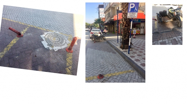 “ Büyükşehir bu sese lütfen kulak verin “Manisa’nın Turgutlu ilçesinde trafik magandalarının kırdığı trafik dubaları nedeniyle engelli araç sürücüleri ve engelli vatandaşlar zor durumda kalıyor. Kırılan trafik dubaları nedeniyle engelliler yaya geçitlerinden geçemediği gibi, engelli özel park alanlarına başka duyarsız sürücüler park etmesi kargaşaya yol açıyor. Vatandaşlar kırılan dubaların yerine yenilerin konmasını acilen istiyorlar. Atatürk Bulvarı No 150 sayılı yerdeki sorun için Ahmet Gömleksiz ;”Biz Manisa Büyükşehir’e sözlü başvurduk. Elimizde duba yok ,ihale yapılacak. Düşünebiliyor musunuz? Koskoca büyükşehrin elinde duba yokmuş. Söz konusu engelliler oto park yerindeki dubalar hayvanlar tarafından kırılınca, başka yerden sökülen iki dubayı buraya montajladılar. Arzumuz Büyükşehrinin bu sese kulak vermesi lütfen el atın, belediyenin bu sese kulak vermeleri” diye arzularını ifade ettiler. Yaprak İpek