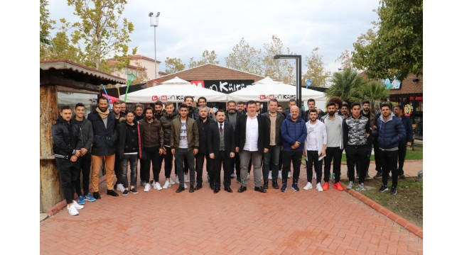 TFF 3. Lig 1. Grup lideri Manisa Büyükşehir Belediyespor, 15. haftada deplasmanda karşılaşacağı Batman Petrol Spor mücadelesi öncesinde kahvaltıda bir araya geldi. İş Adamı Hasan Eryılmaz, Manisa’nın Sesi Gazetesi ve 45 Haber internet sitesinin konuğu olan Manisa Büyükşehir Belediyespor’a Batman deplasmanı öncesinde başarılar diledi. Manisa Büyükşehir Belediyespor futbol takımı, 3 Aralık Pazar günü deplasmanda karşılaşacağı Batman Petrol Spor mücadelesi öncesinde kahvaltıda bir araya geldi. Manisa’nın Sesi Gazetesi ile 45 Haber internet sitesinin organize ettiği kahvaltıya Manisa Büyükşehir Belediyesi Kulüp Başkanı Mevlüt Aktan, iş adamı Hasan Eryılmaz ile teknik heyet ve futbolcular katıldı. Sezon başından bu yana elde ettikleri başarılardan dolayı teknik heyet ve futbolcuları tebrik eden Hasan Eryılmaz, Batman Petrol Spor maçı başta olmak üzere, ligin geri kalanında başarılar diledi. Kendilerine yapılan davetten dolayı teşekkürlerini ileten Kulüp Başkanı Mevlüt Aktan, “Şampiyonluk hedefi doğrultusunda rehavete kapılmadan mücadelemizi sürdürüyoruz. Her maç bizim için final niteliğinde. İnşallah yolun sonunda mutlu olacağımız, Manisa’yı da mutlu edeceğimiz sonuçlara imza atacağız” dedi.