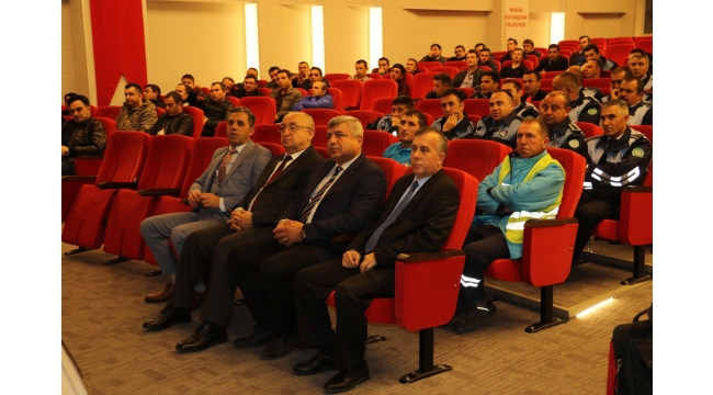Manisa Büyükşehir Belediyesi personeline yönelik verilen seminerde, personel uyuşturucu maddelere karşı bilgilendirildi. Seminerde bilgiler Manisa İl Emniyet Müdürlüğü Narkotik Şube Müdürlüğü yetkilisi tarafından verildi.Manisa Büyükşehir Belediyesi personeline yönelik düzenlediği eğitim seminerlerini sürdürmeye devam ediyor. Vatandaşların daha kaliteli hizmet alması, personelin ise daha bilinçli ve daha kaliteli hizmet vermesi amacıyla düzenlenen eğitim seminerleri kapsamında Büyükşehir Belediyesi personeli uyuşturucu maddelere, kullanan bağımlılar ve karşılaşılması durumunda yapılması gerekenler hakkında İl Emniyet Müdürlüğü ile ortak düzenlenen seminerde Narkotik Şube Müdürlüğü yetkilisi tarafından bilgilendirildi. Manisa Büyükşehir Belediyesi İkiz Kuleler Oda ve Dernekler Binası Konferans Salonu’nda yapılan seminere İnsan Kaynakları ve Eğitim Dairesi Başkanı Muzaffer Şaşmaz, Şube Müdürleri ve çeşitli birimlerdeki personeller katıldı.“Bu tür seminerler faydalı oluyor”Seminerin açılış konuşmasını yapan İnsan Kaynakları ve Eğitim Dairesi Başkanı Muzaffer Şaşmaz, İl Emniyet Müdürlüğü ile ortaklaşa düzenlenen eğitim seminerinde sunum eşliğinde verilecek bilgilerin herkes tarafından dikkatlice dinlenmesi gerektiğini belirterek, “Ben bundan önceki mesleki hayatımda bu tür seminerlere elimden geldiğince katıldım. Katılmaya da devam ediyorum. Bu tür etkinliklerin faydalı olduğunu düşünüyorum. Ben bu seminerlerin faydasını gördüm. Sizlerin de bu seminerlerden olabildiğince bilgi almanızı tavsiye ediyorum. Verilen seminerin hayırlı olmasını diliyorum” diye konuştu.