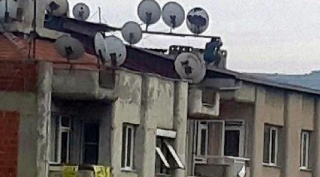Çatıda tedbirsiz anten tamirine zabıta müdahalesi