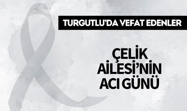 Çelik Ailesi’nin Acı GünüTURGUTLU İlçesi sakinlerinden Salih Çelik hakkın rahmetine kavuştu. Cenazesi bugün öğle namazına müteakip Alankuyu Camii’nde kılınacak cenaze namazının ardından yeni kabristanda toprağa verilecek.Yakınları: babası merhum Mustafa Çelik, annesi Meskure Çelik, enişteleri Reşat Ölçülü, İsmail ZeybekMerhuma Allah'tan rahmet, yakınlarına başsağlığı dileriz.