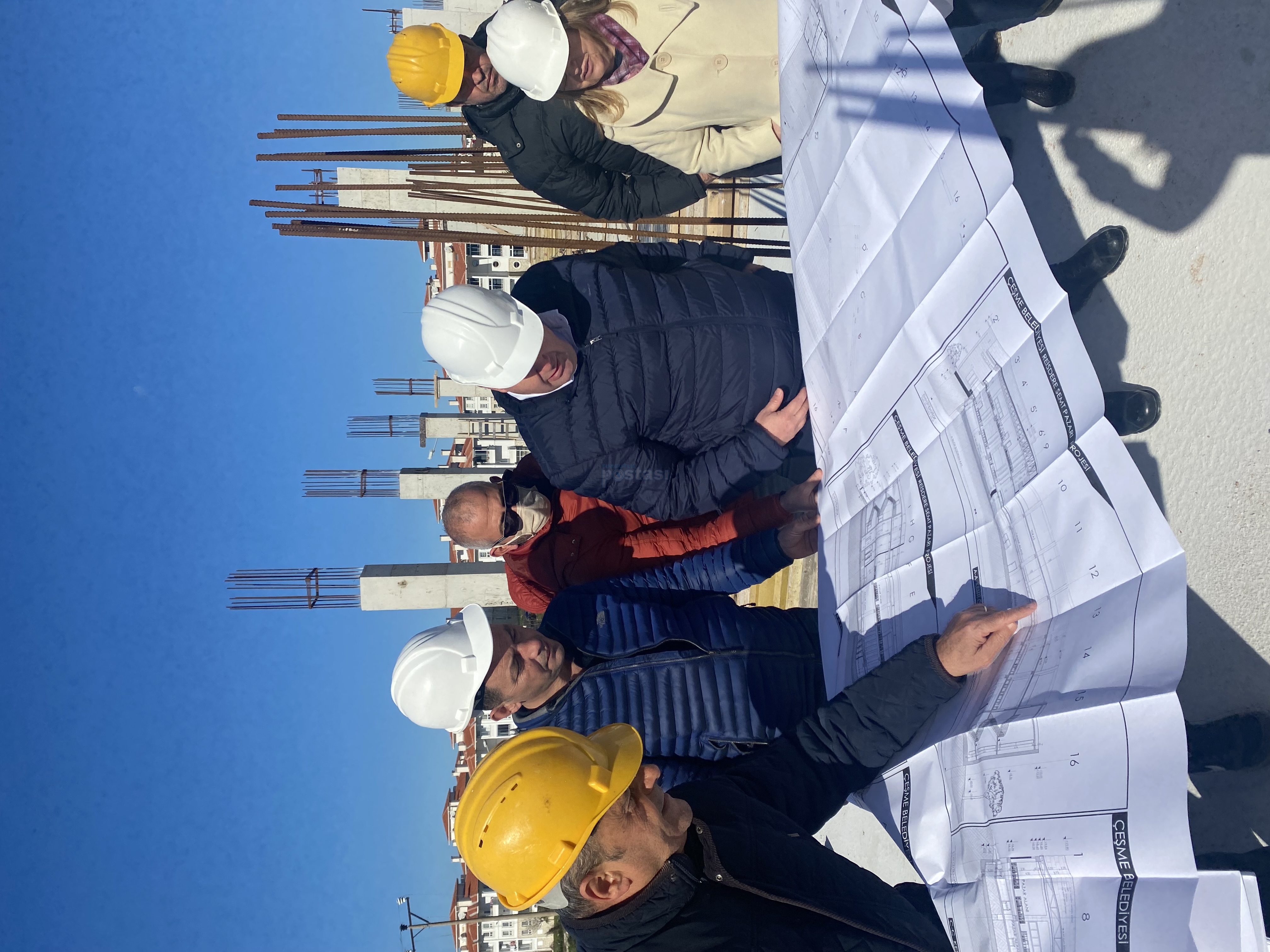 Kapalı Pazar yeri çalışmalarını ziyaret ederek, yerinde incelemelerde bulunan Çeşme Belediye Başkanı M. Ekrem Oran, “4000 m2 kapalı alanda, 2 katlı bir yapıdan oluşan tesiste bodrum katta otopark, birinci katta pazar yeri ve ikinci katta 300 kişilik çok amaçlı kapalı salonu, fuayesi ve ona bağlı mekanlar bulunacak. 1000 metrekare alanda 30 araçlık otopark, 1.400 metrekare alanda ise 140 kişilik kapalı, 160 kişilik açık toplam 300 kişilik düğün ve çok amaçlı toplantı salonu olacak” dedi.