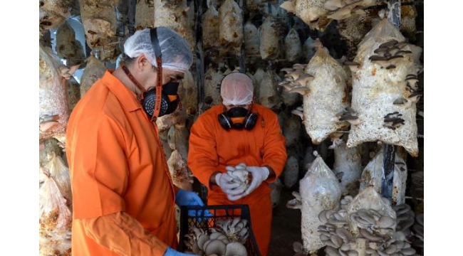Cezaevinde istiridye mantarı hasadı MANİSA'nın Salihli ilçesinde bulunan cezaevinde 2 yıl önce hayata geçirilen istiridye mantarı atölyesinde hasat dönemi başladı.Salihli T Tipi Kapalı ve Açık Ceza İnfaz Kurumu'nda iş kolu faaliyetleri kapsamında 200 metrekare kapalı alanda hayata geçirilen istiridye mantarı üretiminde hasat heyecanı başladı. Geçen yıl yaklaşık 10 ton üretim yapılan atölyede bu yıl, 3 periyot halinde toplam 15 ton hasat yapılması planlanıyor. Salihli Cumhuriyet Başsavcısı Hasan Uğurlu, tesislerde üretilen mantarları hem Türkiye'nin çeşitli bölgelerindeki cezaevlerine gönderdiklerini hem de satış reyonları aracılığıyla vatandaşlarla buluşturduklarını söyledi.İki odada ve 200 metrekare alanda üretim yaptıklarını belirten Uğurlu, "Türkiye'de 2 ceza infaz kurumunda istiridye mantarıyla ilgili üretim faaliyeti yapılmaktadır. Ancak Salihli'deki kapasite olarak en büyüğü. Bu iş kolumuzda bir personelimiz, iki hükümlümüz çalışmaktadır. Biz bu işi oldukça profesyonel şekilde yapmaktayız. Tesisimizde üretimle ilgili olarak denetim kontrolü bulunan bir ziraat mühendisimiz yer alıyor" dedi. Ürünün yüksek kalitede olduğunu söyleyen Uğurlu, işi öğrenen hükümlüleri sürekli değiştirerek daha fazla mahkuma işin öğretildiğini de kaydetti.Kurumda görevli ziraat mühendisi Ali Ömür Bereketli ise, "Ürettiğimiz ürünleri ceza infaz kurumlarımıza gönderiyoruz. Aynı zamanda satış reyonlarımızda satışını yapıyoruz" dedi. dha