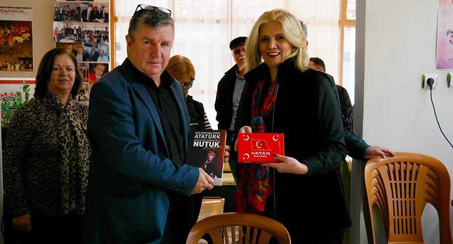 CHP’DEN MAKEDON GÖÇMENLERİNE İADE-İ ZİYARETCHP Turgutlu İlçe Örgütünün yeni yönetimini ziyaret eden dernek ve kurumlara iade ziyaretleri devam ediyor.CHP Turgutlu İlçe Yönetimi bugün saat 15.00’de Makedon Göçmenleri derneğine iade-i Ziyarette bulundular. CHP örgütü Makedon Göçmenleri Dernek Başkanı Ercan Özduman ve dernek yöneticileri tarafından karşılandı.Ziyarette CHP İlçe Sekreteri Gülay Dönmez tarafından Özduman’a Nutuk ve Türk Bayrağı takdim edilirken, Başkan Yakup Çilel de ziyarette; “ Çağdaş Türkiye geleceğine inanan insanlar olarak herkes çevresini aydınlatmak zorunda, sizler göçmenlerin balkanlardan gelen ve kökü balkanlara dayanan vatandaşlarımızın ciddi bir dili, sözü oluyorsunuz. Çok güzel bir çalışma yapıyorsunuz. Derginizi ve etkinliklerinizi takip ediyoruz. Bu ciddi adımı atıp Turgutlu’daki tüm Makedon göçmenlerinin sözü, özü, dili olmanızdan dolayı da tebrik ederim. Bizler CHP olarak bu gibi hizmetlerinizin her zaman yanındayız, olmaya da devam edeceğiz. “dedi.Özduman da , “Yeni nesil gençlerimizi kendi kültürümüzü, kendi tarihimizi öğretmemiz gerekiyor. O yüzden öncelikle Turgutlulu göçmenlerimize yönelik birçok faaliyet düşünüyoruz. Kamuoyunun da desteği ile ciddi bir çalışmalar yapmaya gayret gösteriyoruz. . Sizlerin de ziyaretinize teşekkür ederiz.” Diyerek derneğin yayınlamış olduğu Vardar Dergisini CHP Yönetimine takdim etti.Ziyaret Dernek üyeleri ve CHP İlçe Örgütünün toplu fotoğraf çekilmesiyle son buldu.HABER MERKEZ