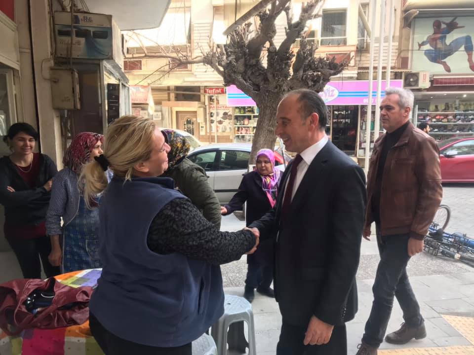 CHP’li Belediye Başkan adayı Akın Pazartesi PazarındaCHP Turgutlu Belediye Başkan Adayı Çetin Akın , ilçenin en büyük semt pazarı olan Pazartesi Pazarı esnafını ziyaret ederek projelerini anlatı.Bugün öğle vakti CHP İlçe Başkanı Yakup Çilel, önceki ilçe başkanlardan Erk Kayabaş, Vahit Doğrucu, CHP Turgutlu Kadın Kolları Başkanı Tülin Karaaslan ve partililer Pazartesi Pazarında esnafı ziyaret ederek karşılıklı sohbet etti. Zaman zaman projelerini anlatan Akın, esnaflardan yoğun ilgi gördü. NURULLAH ÇANKAYA