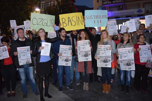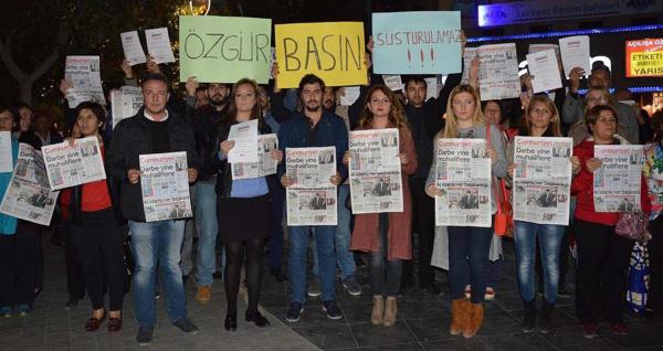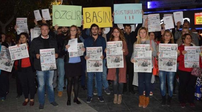 CHP Manisa İl Gençlik Kolları üyeleri, Cumhuriyet Gazetesi'nin yazarları ile yöneticilerine yönelik yapılan operasyona tepki göstermek amacıyla basın açıklaması yaptı, bildiri dağıttı.