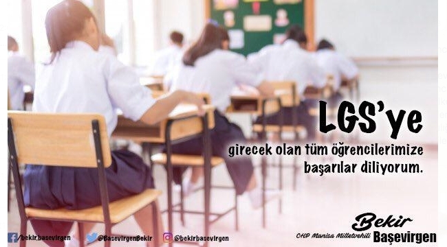 CHP Manisa Milletvekili Bekir Başevirgen , cumartesi günü yapılacak olan” Liselere Giriş Sınavları “için öğrencilere başarılar diledi.Başevirgen yayınladığı mesajda Ülkemizin geleceğinde imzaları olacak çocuklarımızın yarın gireceği Liselere Giriş Sınavında başarılı olacaklarından hiç şüphem yok.