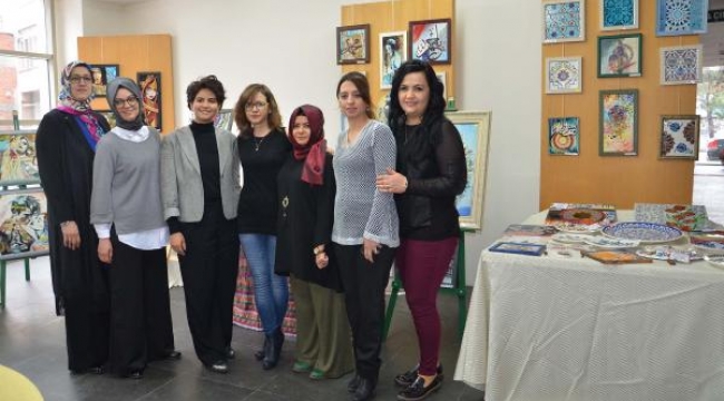 MANİSA'nın Akhisar ilçesinde bir apartmanın sığınağını çini atölyesine çeviren 6 ev kadını, 6 ay içinde hazırladıkları 200 farklı eseri sergiledi.