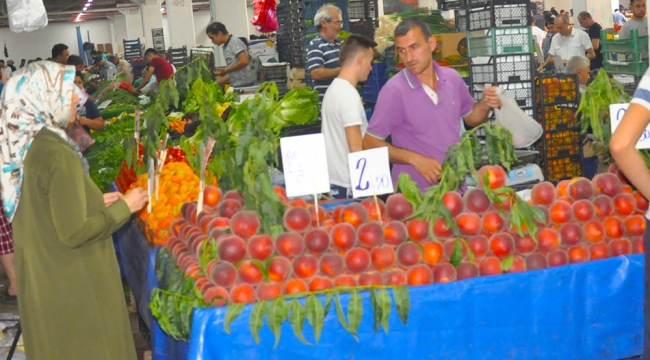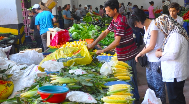 Cumartesi Pazarına yoğun ilgiMANİSA’ nın Turgutlu İlçesi’nde Cumartesi günleri kurulan ikinci büyük pazarı olan, Cumartesi Pazarı’nda sebze ve meyveye fiyatları vatandaşı pek memnun etmedi.Turgutlu’da bu hafta sonu kurulan Cumartesi Pazarında yoğun ilgi vardı. Sebze ve meyve fiyatlarının bir hayli zamlandığını belirten pazarcılar, ‘’ Ürünlerin normal fiyatları. Çiftçilerin halinden kimse anlamıyor.’’ Diyerek sert tepki verdi.Pazarda en büyük ilgiyi kiraz gördü. İlçenin en görkemli pazarı olan Cumartesi Pazarı’nda halkın sıcak havaya karşı aldığı önlem alışverişlerini sabahın erken saatlerinde yapmasıydı.Pazarda fiyatlar ise şöyle: Kiraz 4 ila 10 lira, Şeftali şeftali 1 ile 2.5 lira, domates 75 kuruş ile 2.5 lira çilek 4 ile 6 lira, erik 1 ile 3 lira, börülce 10 ile 15 lira. Süleyman PEKKARA