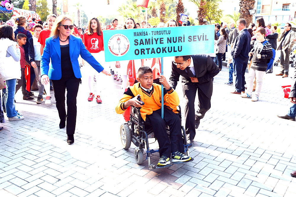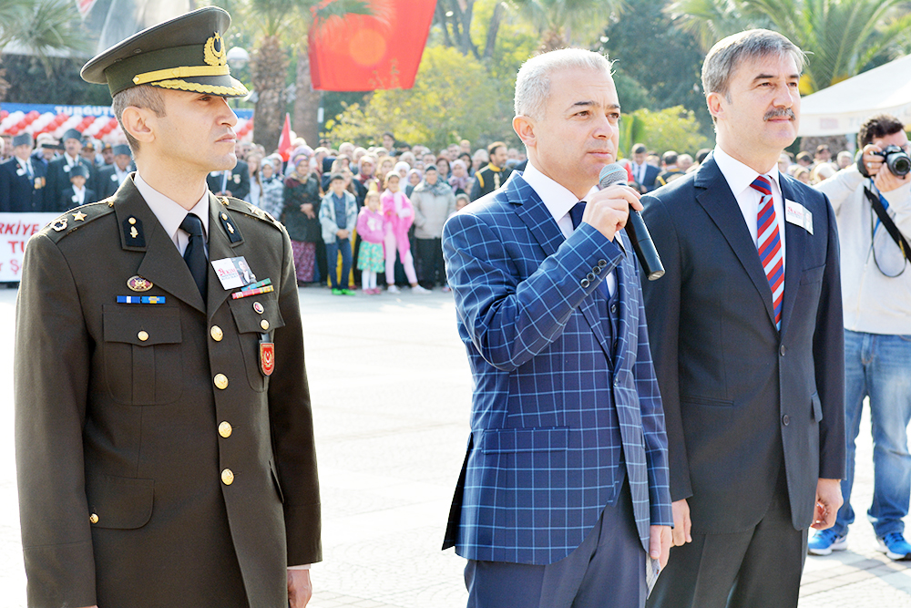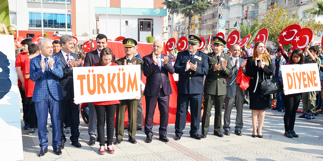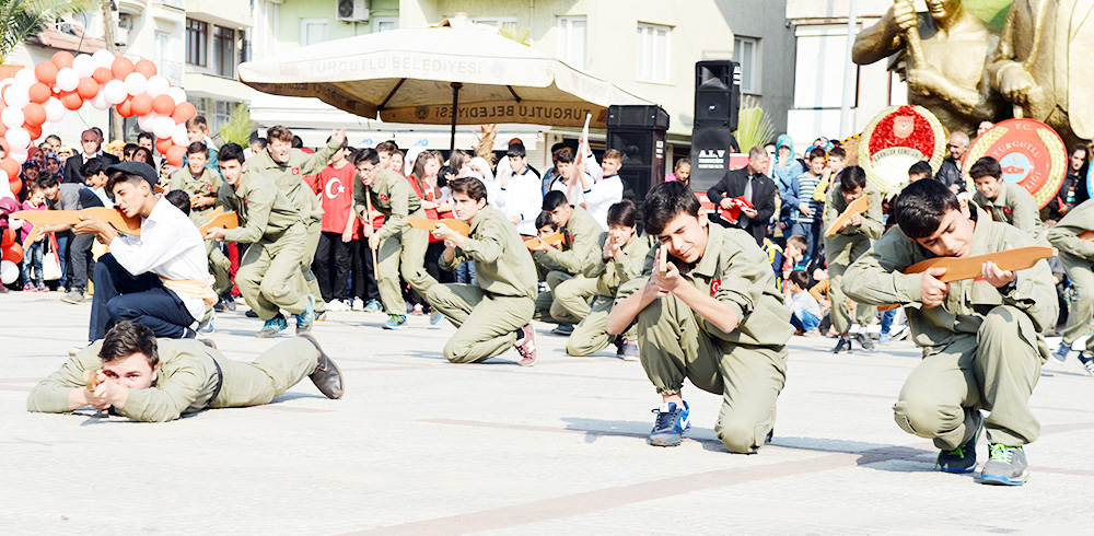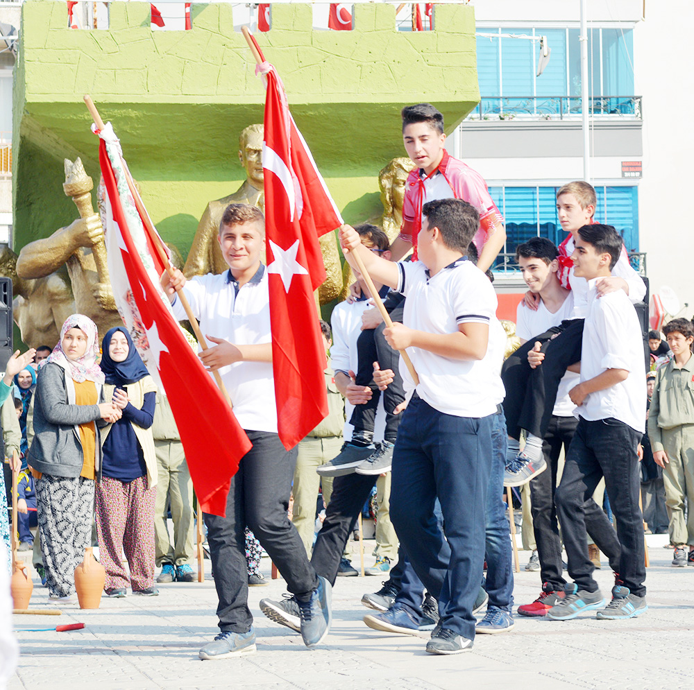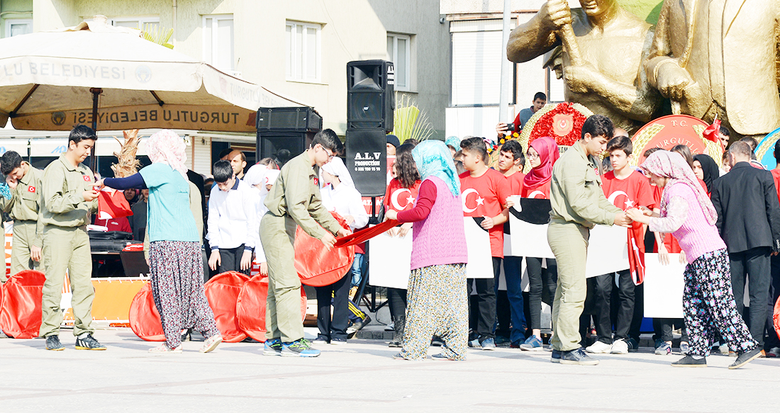 MANİSA’nın Turgutlu İlçesinde Cumhuriyetimizin kuruluşunun 93.Yıldönümü törenlerle kutlandı. Turgutlu Kaymakamı Uğur Turan’ın makamında tebrikleri kabulüyle başlayan kutlamalar eski adıyla 50.Yıl Alanı olan 15 Temmuz Demokrasi Şehitleri Alanı’nda yapılan etkinliklerle sona erdi… Cuma günü saat 12.30’da çelenklerin konulmasıyla başlayan 29 Ekim Cumhuriyet Bayramı kutlamaları, cumartesi Kaymakam Uğur Turan’ın makamında halkın ve protokolün bayram tebriklerini kabul etmesiyle devam etti. Ardından kortej eşliğinde 15 Temmuz Demokrasi Şehitleri Alanı’na geçildi. Alandaki programa Turgutlu Kaymakamı Uğur Turan, İlçe Garnizon Komutanı Per. Bnb. Ömer Haşim Olgun, Turgutlu Belediye Başkanı Turgay Şirin, Turgutlu Cumhuriyet Başsavcısı Mustafa Emre, Baro Temsilcileri Av. Merih İlik ve Av. Nilay Yaşır, İlçe Jandarma Komutanı Vekili Zafer Kara, İlçe Emniyet Müdürü Ahmet Esendemir, CHP eski Manisa Milletvekili Hasan Ören, Ak Parti İlçe Başkanı Av.Mürşit Gedizli, CHP İlçe Başkanı Erk Kayabaş, İlçe Milli Eğitim Müdürü Mehmet Ölmez, daire müdürleri ve çok sayıda davetli ile vatandaşlar katıldı.Alandaki kutlamalar Kaymakam Turan, Belediye Başkanı Şirin ve Garnizon Komutanı Olgun’un bayramı kutlamasıyla başladı. Saygı duruşu ve İstiklal Marşı sonrası Kaymakam Uğur Turan günün anlam ve önemini belirten bir konuşma yaptı. Öğrenciler şiirlerini okudu, Belediye ve Halk Eğitim Merkezinin halk oyunları ekipleri gösterilerini sergiledi.Öğrencilerin hazırladığı Cumhuriyet Teması ve final tablosundaki gösteriler katılımcılar tarafından büyük alkış aldı. Cumhuriyet Bayramı kutlamaları resmi tören geçişinin ardından sona erdi. Nurullah ÇANKAYA