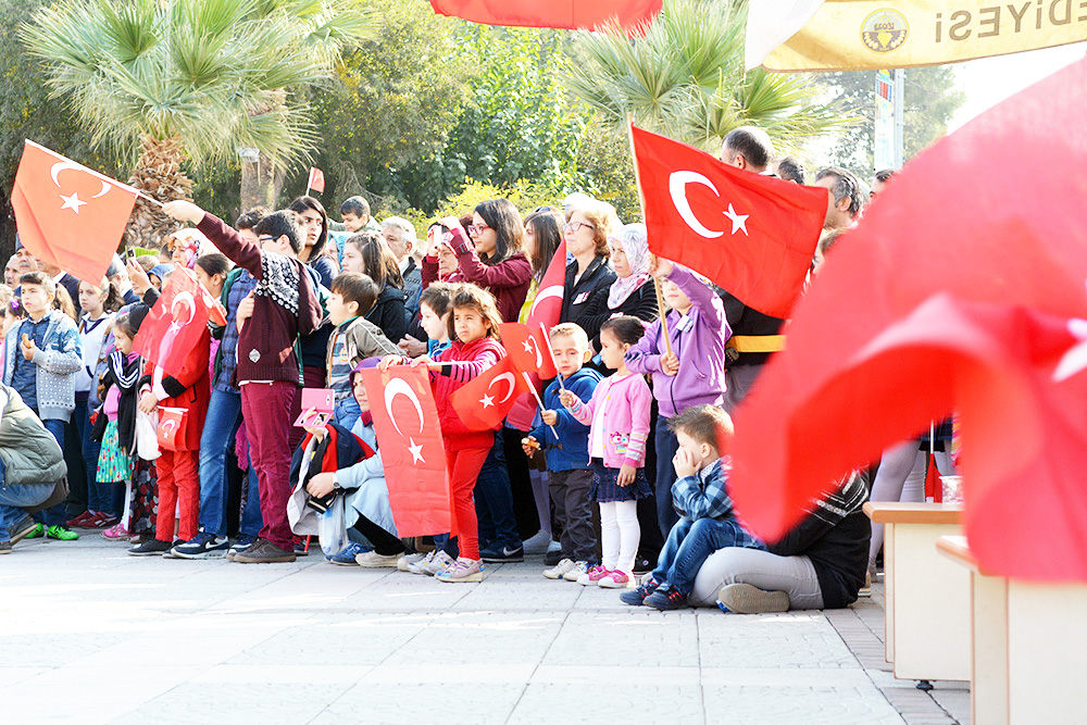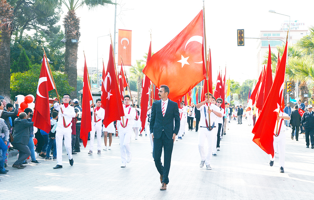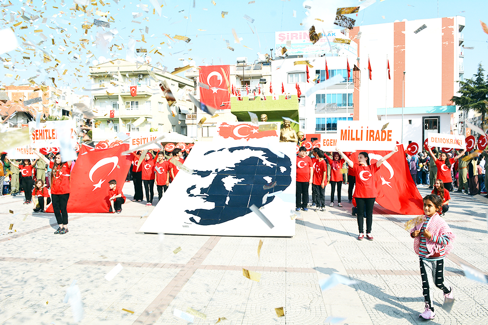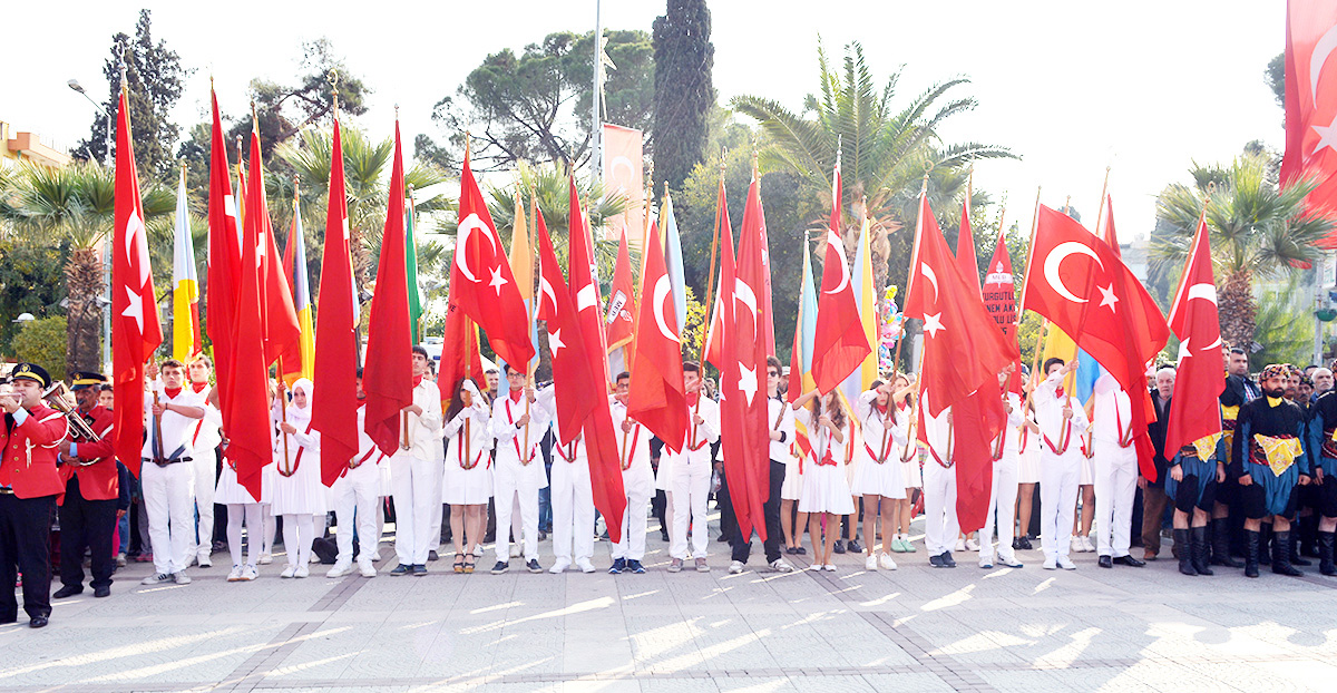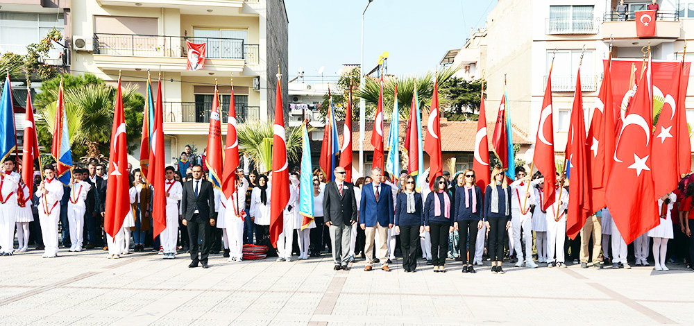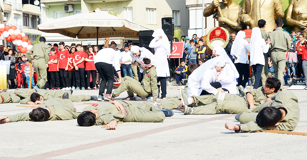 MANİSA’nın Turgutlu İlçesinde Cumhuriyetimizin kuruluşunun 93.Yıldönümü törenlerle kutlandı. Turgutlu Kaymakamı Uğur Turan’ın makamında tebrikleri kabulüyle başlayan kutlamalar eski adıyla 50.Yıl Alanı olan 15 Temmuz Demokrasi Şehitleri Alanı’nda yapılan etkinliklerle sona erdi… Cuma günü saat 12.30’da çelenklerin konulmasıyla başlayan 29 Ekim Cumhuriyet Bayramı kutlamaları, cumartesi Kaymakam Uğur Turan’ın makamında halkın ve protokolün bayram tebriklerini kabul etmesiyle devam etti. Ardından kortej eşliğinde 15 Temmuz Demokrasi Şehitleri Alanı’na geçildi. Alandaki programa Turgutlu Kaymakamı Uğur Turan, İlçe Garnizon Komutanı Per. Bnb. Ömer Haşim Olgun, Turgutlu Belediye Başkanı Turgay Şirin, Turgutlu Cumhuriyet Başsavcısı Mustafa Emre, Baro Temsilcileri Av. Merih İlik ve Av. Nilay Yaşır, İlçe Jandarma Komutanı Vekili Zafer Kara, İlçe Emniyet Müdürü Ahmet Esendemir, CHP eski Manisa Milletvekili Hasan Ören, Ak Parti İlçe Başkanı Av.Mürşit Gedizli, CHP İlçe Başkanı Erk Kayabaş, İlçe Milli Eğitim Müdürü Mehmet Ölmez, daire müdürleri ve çok sayıda davetli ile vatandaşlar katıldı.Alandaki kutlamalar Kaymakam Turan, Belediye Başkanı Şirin ve Garnizon Komutanı Olgun’un bayramı kutlamasıyla başladı. Saygı duruşu ve İstiklal Marşı sonrası Kaymakam Uğur Turan günün anlam ve önemini belirten bir konuşma yaptı. Öğrenciler şiirlerini okudu, Belediye ve Halk Eğitim Merkezinin halk oyunları ekipleri gösterilerini sergiledi.Öğrencilerin hazırladığı Cumhuriyet Teması ve final tablosundaki gösteriler katılımcılar tarafından büyük alkış aldı. Cumhuriyet Bayramı kutlamaları resmi tören geçişinin ardından sona erdi. Nurullah ÇANKAYA