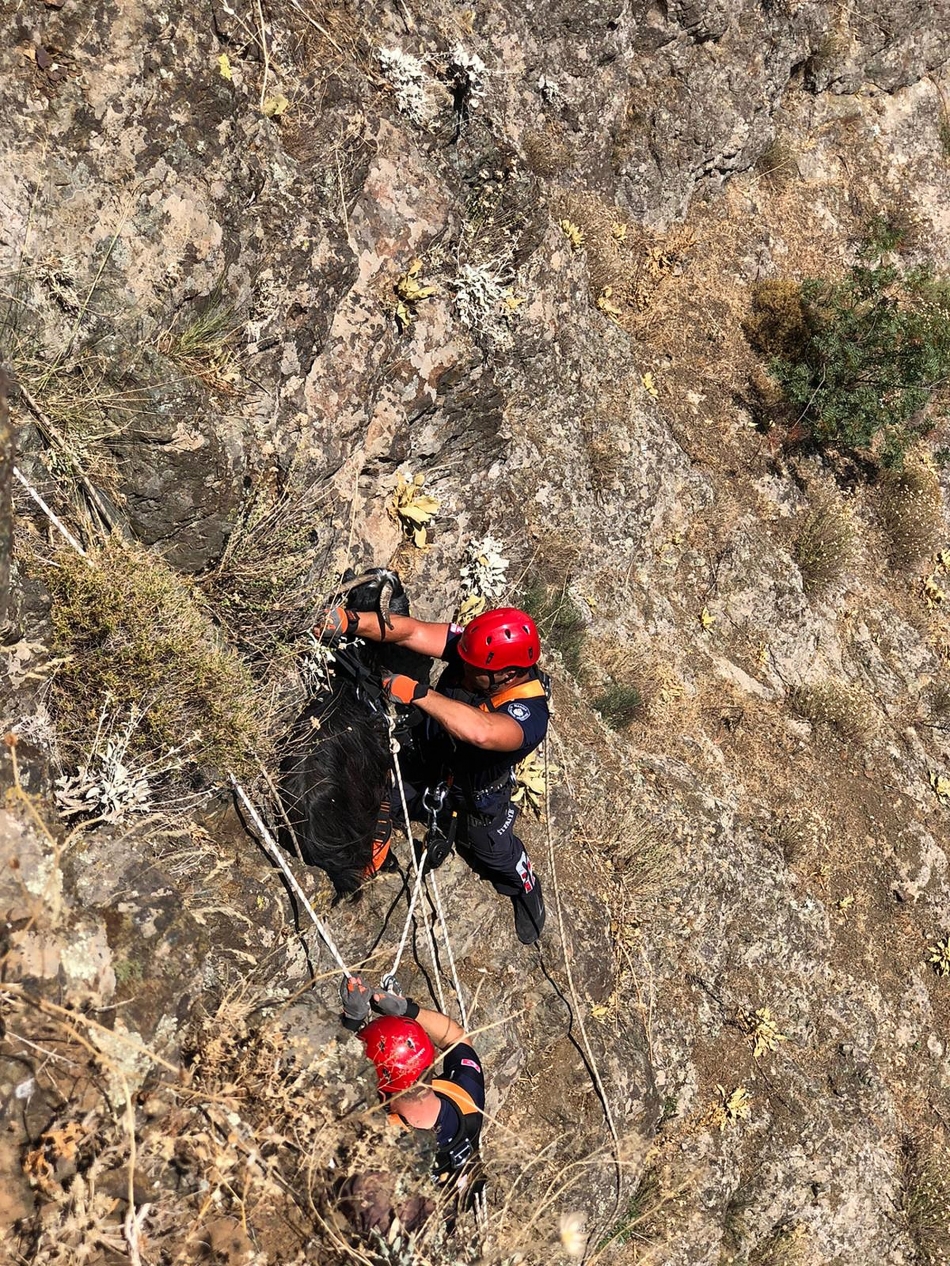 Kaynak Mahallesi'nde yaşayan Ahmet Öz'e ait 3 keçi, dün akşam saatlerinde Spil Dağı eteklerinde otlarken mahsur kaldı. Keçilerinin mahsur kaldığını söyleyen Öz, Manisa Büyükşehir Belediyesi İtfaiye Dairesi Başkanlığı'ndan yardım istedi. Spil Dağı'ndaki yaklaşık 100 metrelik kayalık bir yamacın ortasında mahsur kalan 3 keçi, itfaiye ekiplerinin yukarıdan halatla alana inmesinin ardından tek tek yukarı çıkarıldı. Keçilerine kavuşan Ahmet Öz, itfaiye ekiplerine teşekkür etti. DHA