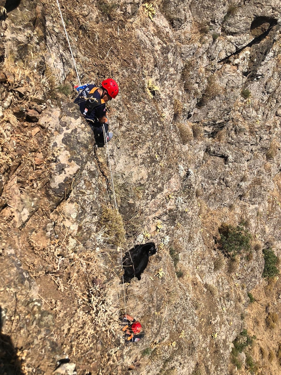 MANİSA’nın Yunusemre ilçesinde, Spil Dağı eteklerinde mahsur kalan 3 keçi, itfaiye ekiplerince kurtarıldı.