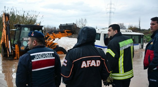 Debisi yükselen derede mahsur kalan midibüsteki 18 kişi, traktör ve dozerle kurtarıldı