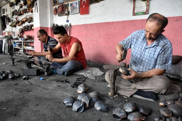 Dededen toruna çancılık mesleğini yaşatıyorlar MANİSA'nın Demirci ilçesindeki atölyelerde çan üretimi yapan ustalar, mesleklerini ayakta tutmaya çalışıyor. İlçede 3'üncü kuşak olarak çan üreten Nevzat Çancı (52), ürettikleri ürünlerin İspanya'daki boğa güreşi festivallerinde de kullanıldığını söyledi. Manisa'nın çan üretimiyle ünlü Demirci ilçesinde atölyelerden çan sesleri yükselirken, ustalar da mesleği ayakta tutmaya çalışıyor. Dededen toruna çan üretiminin sürdüğü ilçede, çan ustaları da çocuklarına bu mesleği sevdirip, kaybolmaya yüz tutan meslek dalını yaşatmak adına çabalıyor. Demirci Sanayi Sitesi'ndeki çan atölyesinde çalışan ve soy adını da mesleğinden alan 40 yıllık çan ustası Nevzat Çancı, bu mesleğin ilçedeki sayılı isimlerinden. 12 yaşında başladığı mesleğini, 2 oğlu ve akrabalarıyla birlikte sürdüren Çancı, "Dededen toruna bu işi devam ettiriyoruz. Çok zahmetli, sabır isteyen bir mesleğimiz var. Küçüklüğümden beri bu işi yaptığımdan zor gelmiyor, paramızı da kazanıyoruz. Dedemiz 1800'lü yıllarda çan yapmaya başlamış. Soyadı Kanunu çıktığında mesleğinden esinlenip, 'Çancı' soyadını almış. Kardeşlerimin çocukları da bu mesleği devam ettiriyor" dedi.'32 KEZ ELDEN GEÇİYOR'Çanların çeşitli boyutlarda yapıldığını ve 32 kez elden geçtiğini dile getiren Çancı, yaptıkları ürünlerin fiyatlarının 4 liradan başlayıp 130 liraya kadar çıktığını söyledi. Çan üretiminin zahmetli olduğunu dile getiren Çancı, "Çanın hammaddesi demir. Biz demire bakır kaplama yapıyoruz, ses özelliği veriyoruz. Saçları çan boyutunda demir makasında kesip içine doğru büküyoruz. Yaklaşık 200 derecelik ısıya sahip ocakta ateş üzerinde tutuğumuz bu saçları ardından saatlerce dövüp çan haline getiriyoruz" dedi.FESTİVALLERDE DE KULLANILIYORÜretiminin yanında ihracat belgesini de aldıklarını anlatan Çancı, hayvanlar için yaptıkları çanların turizm sektöründe de hediyelik eşya olarak kullanıldığını söyledi. Çancı, "Türkiye genelinde müşterilerimiz var. Yaptığımız çanların yüzde 50'sini yurt dışına gönderiyoruz. Yaptığmıız çanları genelde Yunanistan'a satıyoruz. Yunanistan'ın da bizden aldığı bu çanları birçok ülkeye gönderildiğini biliyoruz. Yaptığımız çanlar, festivallerde boğalara takılıyor. İspanya'da yapılan boğa festivalinde de çanlarımız kullanılıyor. Yunanistan üzerinden İspanya, İtalya gibi ülkelere gönderiliyor" diye konuştu.