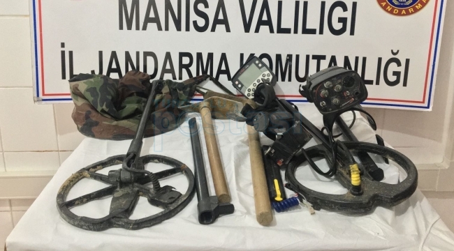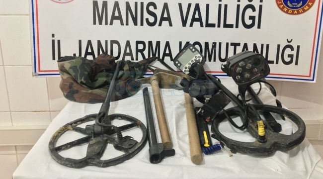 Manisa Valiliğinden yapılan yazılı açıklamada şunlar belirtildi ” Manisa ili Demirci İlçesi Çağıllar Mahallesinde (Mrk.J.Krk.K’lığı Sorumluluk Bölgesi) 30.01.2022 günü saat 15.30 sıralarında alınan duyum üzerine S.D. (1989 d.lu-Erkek)'nin define bulmak amacıyla kazı yapacağı bilgisi alınmış olup, devriye faaliyeti esnasında 135 ada 1 parselde define arayışı içinde olduğu sırada S.D. isimli şahıs suç aletleri ile suçüstü yakalanmıştır. Olay ile ilgili 1 adet E-TRAC-MINELAB, 1 adet GMAX II markalı toplam iki adet detektör ve 2 adet kazma rıza en teslim alınmıştır. Cumhuriyet .Savcısına bilgi verilerek alınan talimatlar doğrultusunda şüpheli şahıs ifadesinin ardından serbest bırakılmıştır. “ HABER MERKEZİ