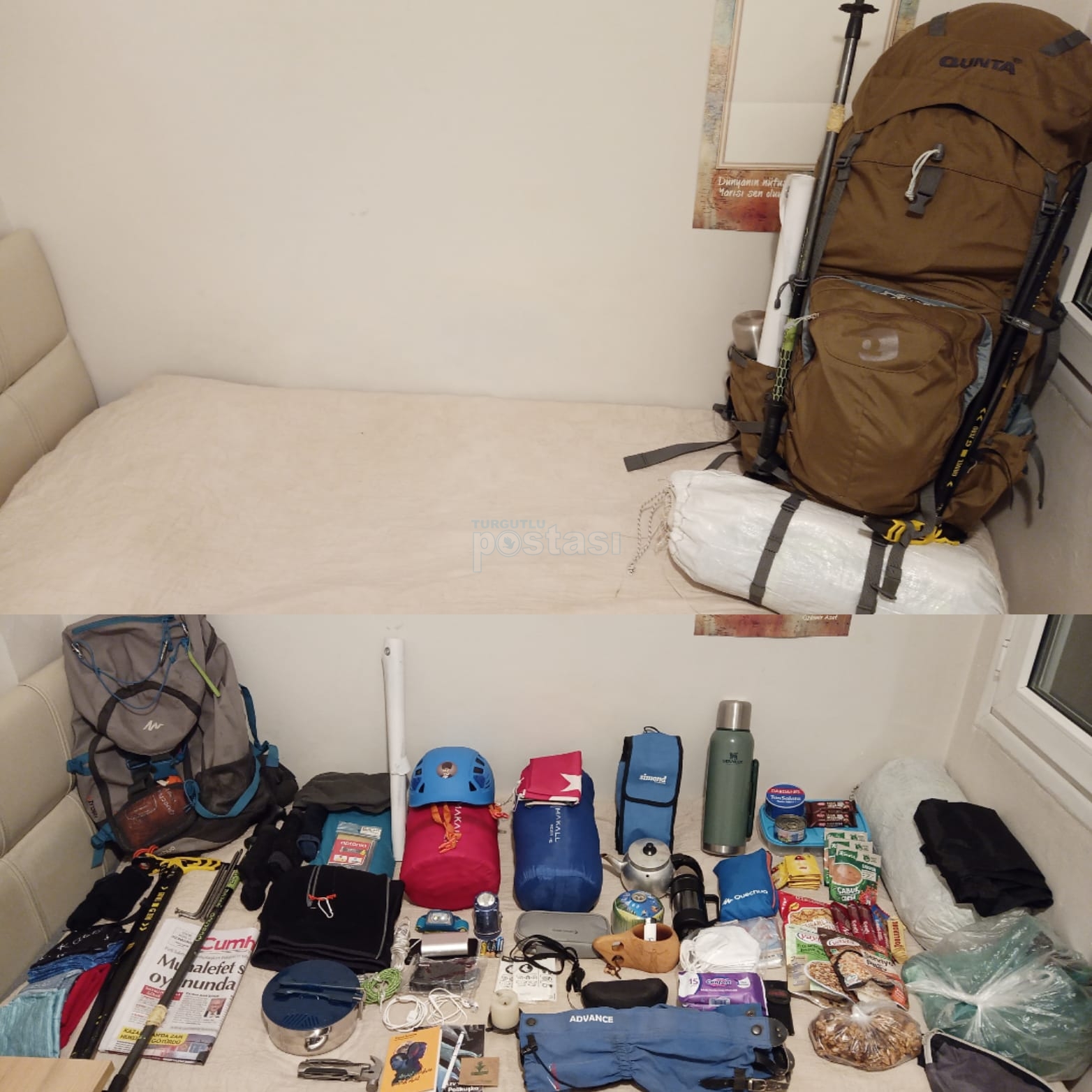 Sınırlı sayıda katılımcı olacağı için bir an önce katılım şartlarını yerine getirerek genel merkezimizi bilgilendirdim.Ne de olsa Zirve Dağcılık Turgutlu Şubesi’ni temsil edeceğim.Yeni lisans , HES kodu, izinler tamamdı.Sıra geldi işin en keyifli kısmı olan malzemelerin hazırlanmasına.Uzun yıllar kampçılık yapmış olmanın verdiği deneyimle ilk iş olarak birkaç gün öncesinden ihtiyaç listesini hazırladım.Sabit ekipmanlar dışında her kamp için farklı liste hazırlamak gerektiğini düşünenlerdenim. 6 Ocak Perşembe günü listemi tamamlayıp Cuma akşamı da çantamı hazırlamaya başladım.Kamp çantası hazırlamak ayrı bir sanat.Neyi nereye koyacağını bilmek , çanta içi uyumu sağlamak çok önemli.Çantayı yerleştirdikçe listedeki işaretlerimi koydum ancak bir de baktım ki bir kampın olmazsa olmazı kamp ocağı başlığım yok.Köyde kaldığını hatırladım.Ancak imdadıma Yanar çifti yetişti.Kamp ocağımı ve kavrulmuş fındıklarımı verip beni güzel bir şekilde uğurladılar. Kendilerine teşekkür ederim.Ne kadar hazırlanırsak hazırlanalım mutlaka unutulan bir şey oluyor bu yolculuklarda.