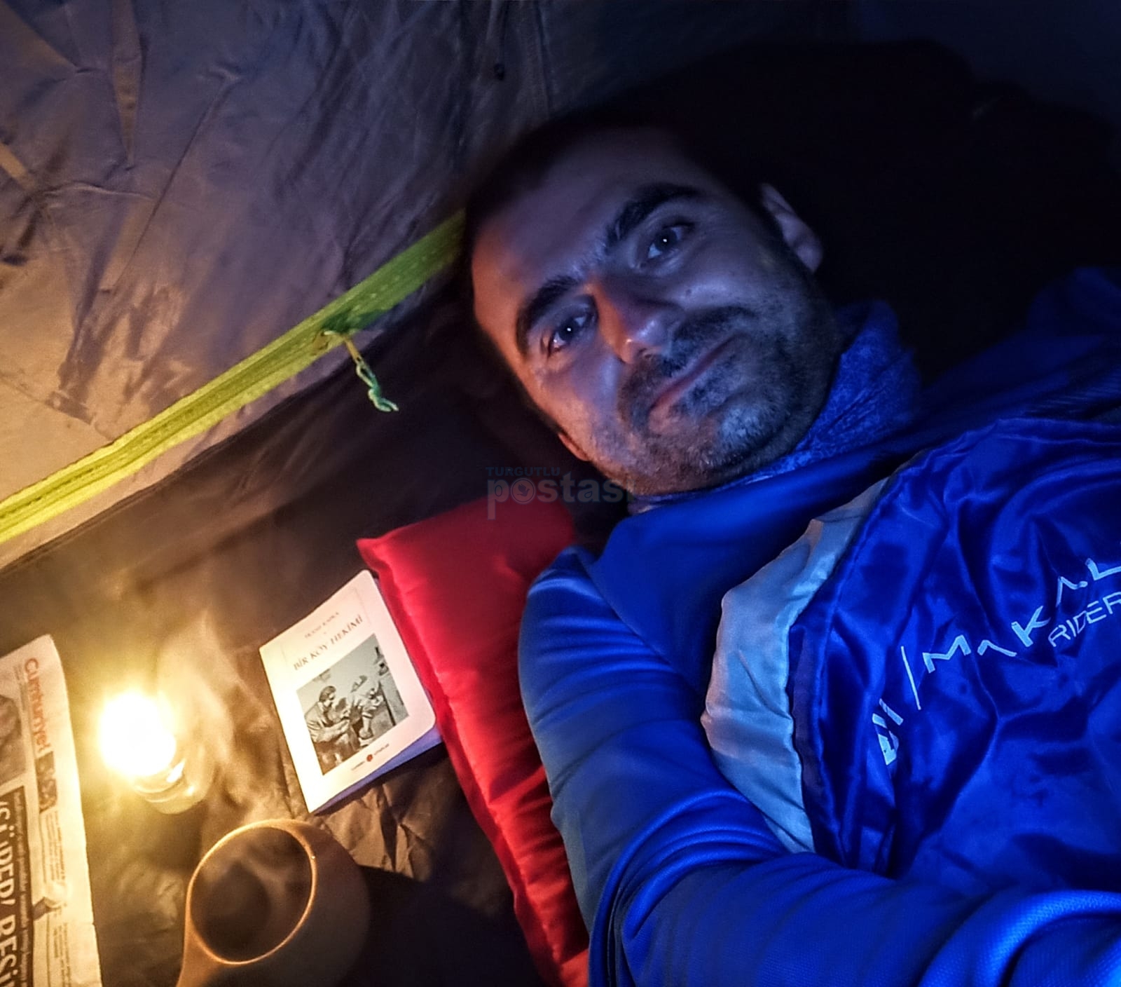 Nihayet çantamı hazırladım ve Cumartesi sabahını beklemeye başladım.İzmir ekibi saat 09.00’ da Turgutlu girişinden beni aldı ve yola devam ettik.İlk molamızı Sart’ta verdik.Yol arkadaşım badimle hasret giderdik.Ardından Gediz’e kadar durmadık.Gediz’de verilen molayla son alışverişlerimizi yaptık ve burada söylemeden edemeyeceğim unutulmaz bir lezzet olan tescilli Gediz Kebabını yedik. Saat 15.30 ‘ da Murat Dağı kamp alanındaydık.Günlerdir birbirimize sorduğumuz acaba kar olacak mı yağmur yağacak mı ?sorularının cevabını yağmurun yağmasıyla aldığımızı düşünürken Murat Dağı bizim için ayrı bir sürpriz hazırlıyordu.Çiseleyen yağmur altında çadırlarımızı kurduk ve kahvelerimizi yudumlamaya başladık.Kamp alanındaki sosyal tesislerde biraz zaman geçirip evden getirdiğimiz yemeklerimizi yedikten sonra saat 21.00 ‘de çadırlarımıza çekildik. – 1 , -3 derecelerde çadırda yatmak biraz üşütücü gibi görünse de iyi malzeme (uyku tulumu,polar ) ve biraz da çadır tecrübesiyle oldukça keyifli hale dönüşebiliyor.Yakılan bir mum, hazırlanan bir fincan sıcak içecek ve bir de kitap oldu mu demeyin keyfime. Hareket saat 07.30 da. İyi uyuyup dinlenmek gerek.