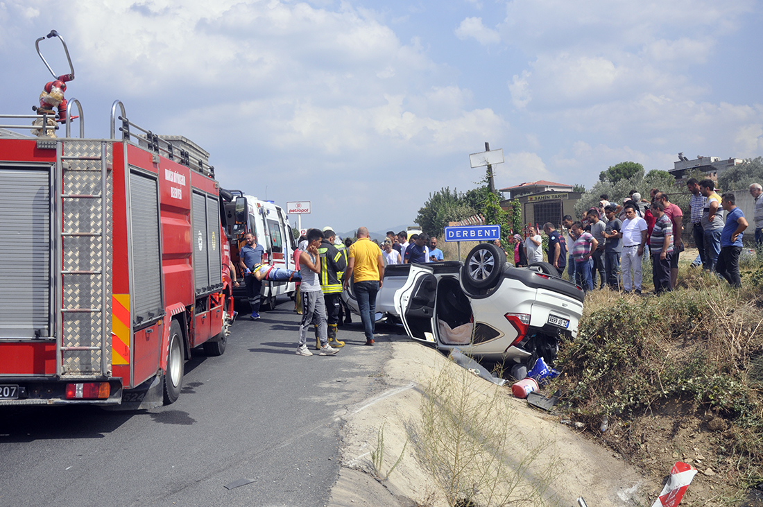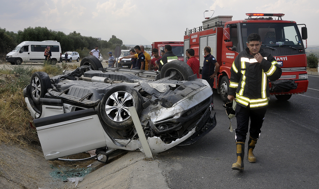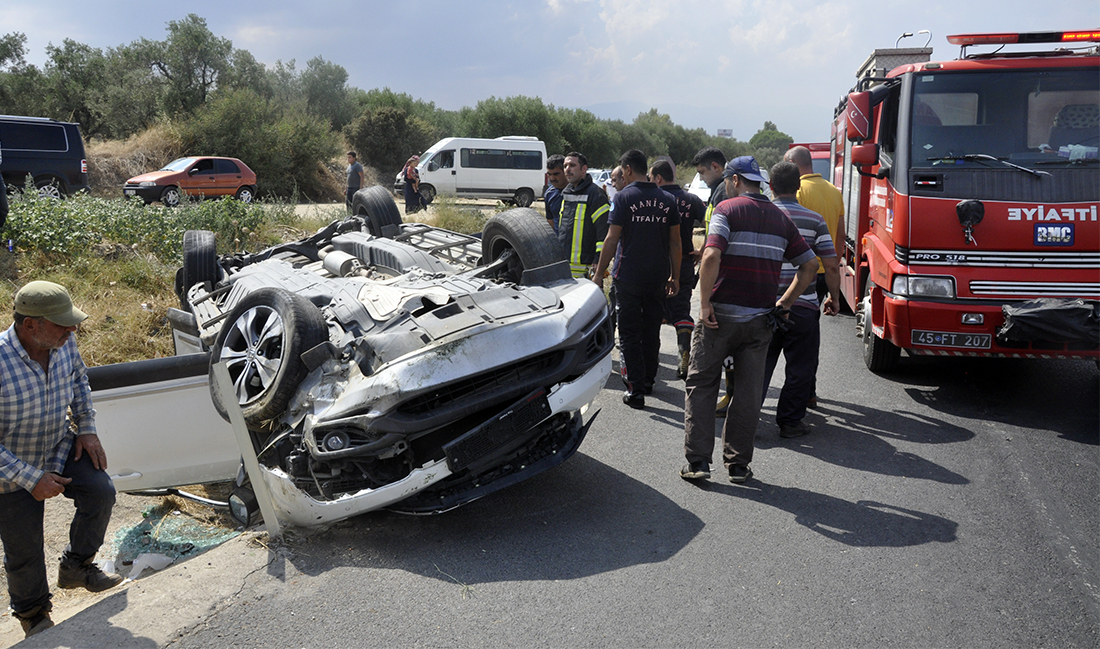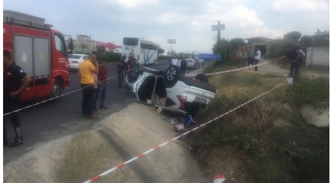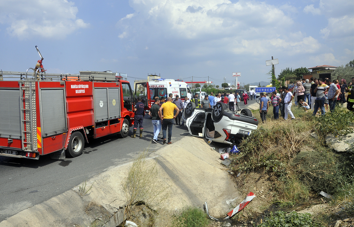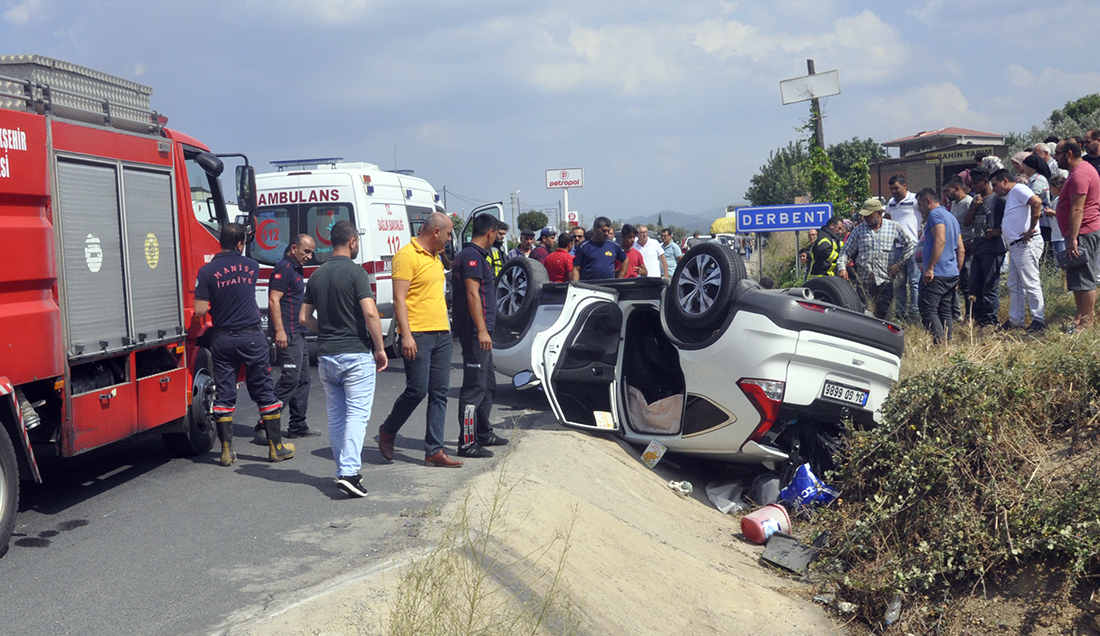 Derbent'te korkutan kazaMANİSA'nın Turgutlu İlçesinde sürücüsünün direksiyon hakimiyetini kaybettiği otomobil takla atarak yol kenarına devrildi. Kazada otomobil sürücüsü ve otomobilde yolcu olarak bulunan 1 kişi yaralandı. Kaza, bugün saat 15.00 sıralarında İzmir - Ankara E-96 Yolu Derbent Mahallesi girişinde meydana geldi. İzmir yönünden Ankara yönüne seyreden 34 GD xxxx plakalı otomobil, sürücüsünün kontrolden çıkıp takla atarak yol kenarına devrildi. Sürücü ve otomobilde yolcu olarak bulunan 1 kişi araçta sıkışarak yaralandı. Çevredekilerin ihbarı üzerine kaza yerine sağlık, itfaiye, polis ve jandarma ekipleri sevk edildi. Araçta sıkışan 2 kişi itfaiye ekiplerinin çalışmasıyla kurtarılarak sağlık ekiplerince ilk müdahalesi sonrası Turgutlu Devlet Hastanesine kaldırıldı. Tedaviye alınan yaralıların sağlık durumlarının iyi olduğu öğrenildi. Kazayla ilgili soruşturma sürüyor.