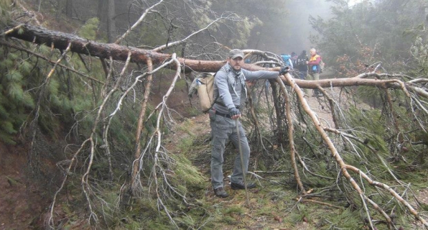 Yükseldikçe hava soğuyup sis bastırıyor. Yürümek zorlaşıyor ve yoruluyoruz. Böyle zamanların kurtarıcısı meyve molaları. Elmalar, portakallar, havuçlar hatta limon dilim dilim paylaşılıyor. Bizimle birlikte ama minik ayaklarıyla koşarak yanımızdan keyifle geçen Çikomuz yürüyüşün maskotu. Ara-sıra köpek korkusu olan M. Ali'ye çığlık attırması hepimizi kahkahalara boğuyor. Kar burada çamlara. çok hasar vermemiş Yine de arada yıkılmış çam ağaçlarının altından geçmek zorunda kalıyoruz.910 metre rakımlı “Karabaş” gediğine varıyoruz. Hem sis, hem soğuk hem rüzgar var. Sert yokuş hepimizi terletti. Kaçar gibi inişe geçiyoruz. Dağın bu tarafı daha nemli sanki. Uygun bir yerde yemek molası veriyoruz. Yolun ortasında çalı, çırpı toplayıp ateş yakılıyor. Arkadaşlar yakmak için, ateş de yanmamak için epey direniyor ama Turdaklılar kazanıyor ve çalılar tutuşuyor. Hazırlanan sucuklar pişiriliyor. Tavada sucuklu yumurta bile yapıyoruz.