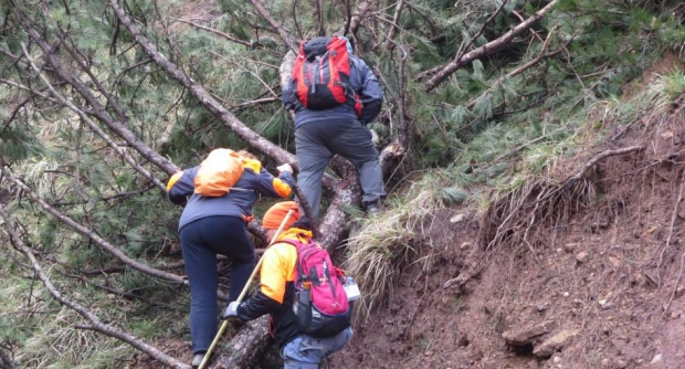 Zaman kaybetmeden köyün içinden geçip patikada ilerliyoruz. Sağ tarafımızda şırıl şırıl akan bir dere bize eşlik ediyor. Yol ayrımına gelince az tereddüt ediyoruz. Cprs cihazımız alt yolu gösterince oradan devam ediyoruz. Hafif rampada zorlanmadan tırmanıyoruz. Liderimiz Celalettin Hocanın dediğine göre 900 rakıma dek tırmanacakmışız. Basit gibi görünüyor ama döne döne çıkan yol uzadıkça uzuyor.