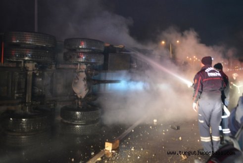 İtfaiye ekipleri kamyona su ve köpük sıkarak söndürürken, yangın kısa sürede kontrol altına alındı, kamyonda yük ise yol kenarına tahliye edildi. Kaza sonrası hafif yaralı olarak kurtarılan sürücü B. 112 ACil Servis ekiplerince ambulansla Turgutlu Devlet Hastanesi’ne kaldırıldı. İzmir – Ankara E-96 Karayolu’nun trafiği de bir süre tek yönden sağlandı. Olayla ilgili soruşturma başlatıldı. Doğan ÇİZMECİ