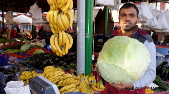 Dev lahanaMANİSA'nın Sarıgöl İlçesi'nde pazar tezgahını süsleyen 13 kilo 420 gram ağırlığındaki dev lanana 10 TL'ye alıcı buldu. Kış sebzelerinin vazgeçilmezlerinden lahana, Sarıgöl'de cuma günü kurulan semt pazarında en çok tercih edilen ürünlerden biri oldu. Sarıgöl Manavlar Derneği Başkanı ve manav Necati Uysal'ın (64) tezgahındaki lahana ise görenleri şaşırttı. Üreticiden toptan satın aldığı lahanalardan birinin büyüklüğünü fark eden Uysal, elektronik terazide tarttığı sebzenin 13 kilo 420 gram geldiğini belirterek "Ben kendimi bildim bileli manavım. Zaman zaman şekli bozuk patatesler gördüm. Ama ilk kez bu kadar büyük lahanayla karşılaştım. Pazarda her gören bir daha bakıyor. Sonunda müşterinin biri 10 liradan satın aldı" dedi.(DHA)