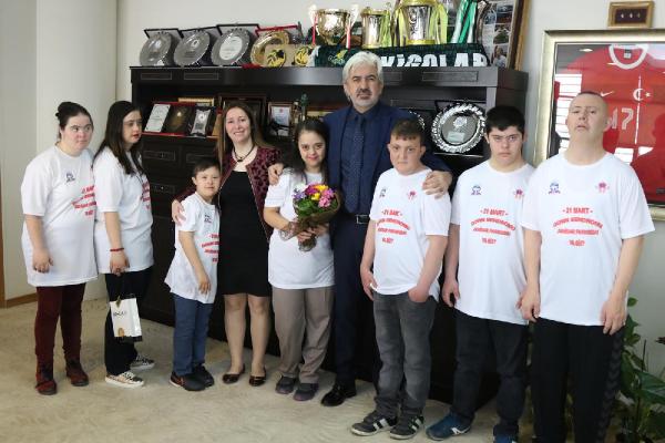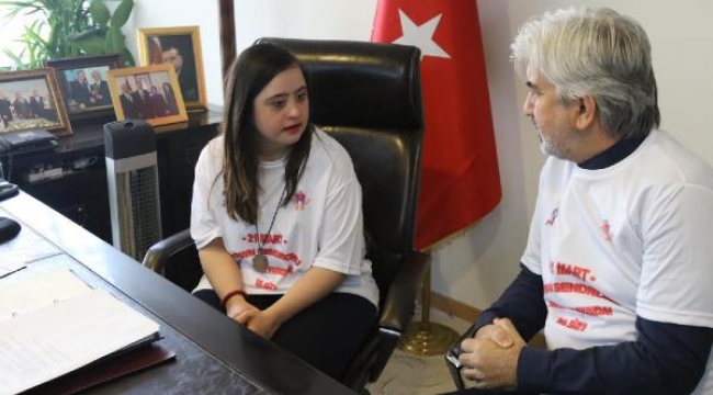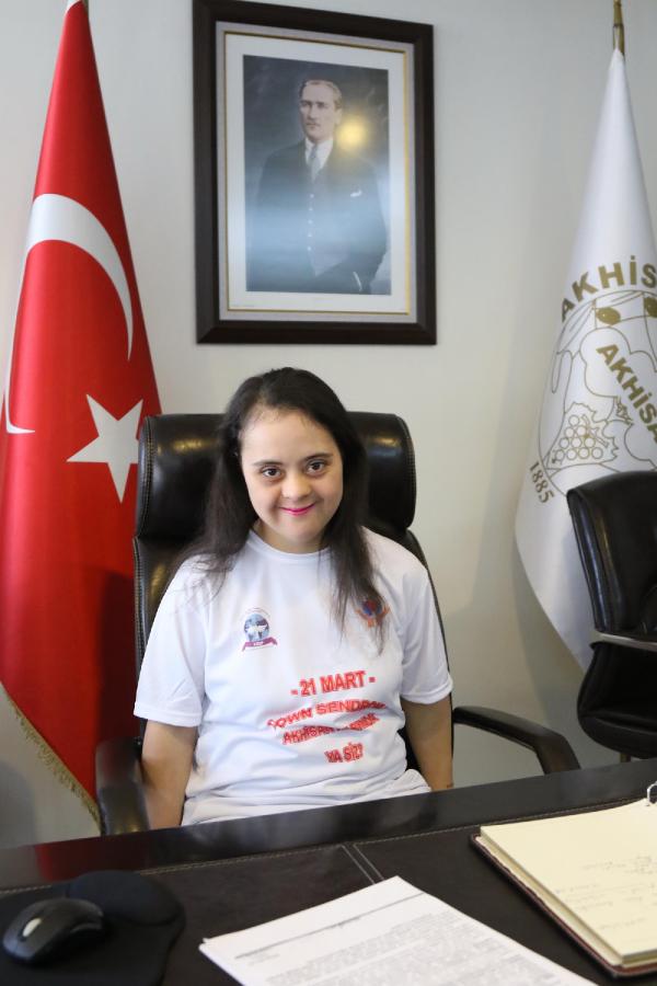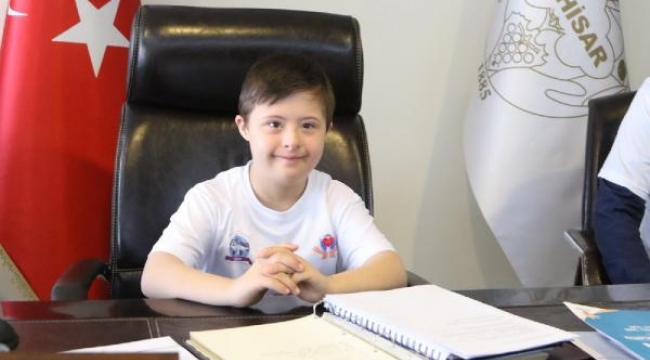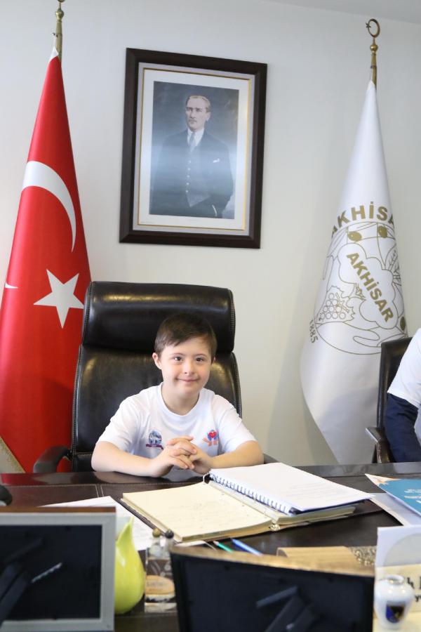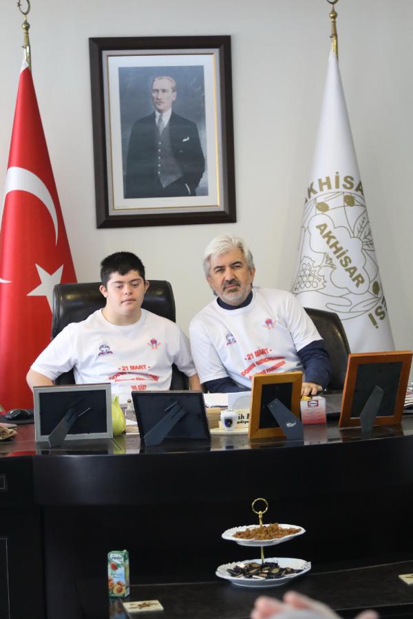 MANİSA'nın Akhisar ilçesinde down sendromlu çocuklar, farkındalık için Belediye Başkanı Salih Hızlı'nın makamına 21 dakika boyunca oturdu.