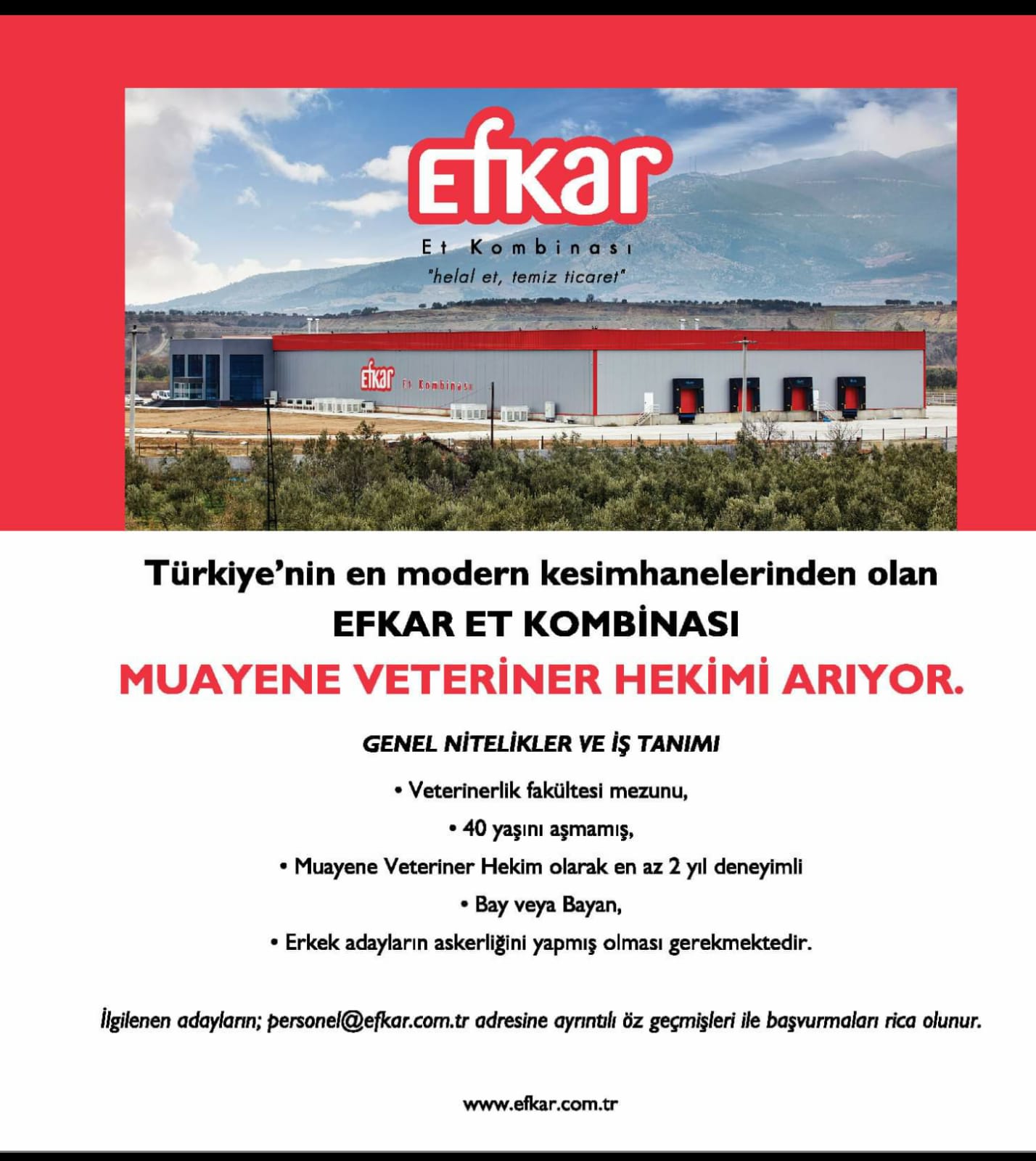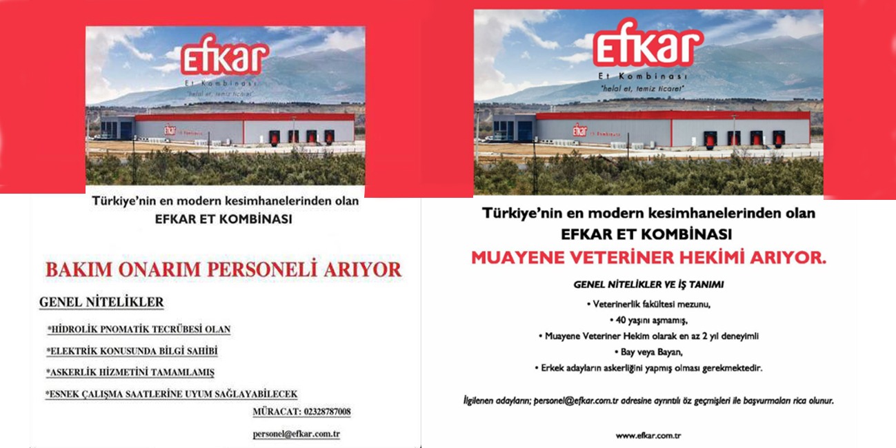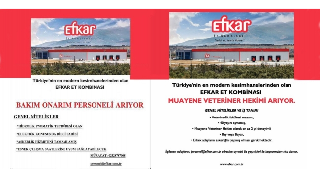 Türkiye’nin en modern kesimhanelerinden olan Efkar Et Kombinası Personel Arıyor-Bakım Onarım PersoneliGenel Nitelikler:-Hidrolik Pnomatik Tecrübesi Olan