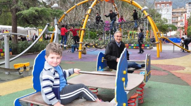 MANİSA'nın Şehzadeler ilçesinde çocukların aileleri ile birlikte güven içerisinde kullanabilecekleri anne-çocuk oyuncakları parklara monte edildi.