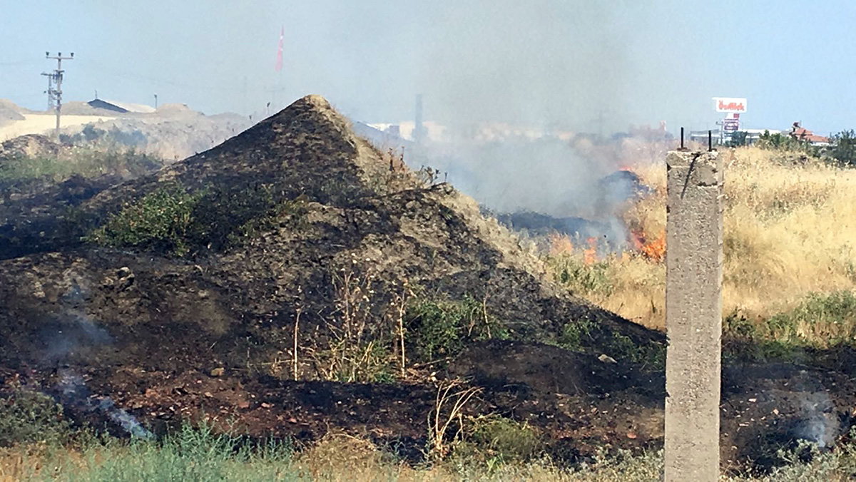 Elektrik telleri koptu, boş arazide yangın çıktı