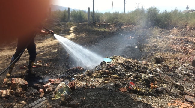 Elektrik telleri koptu, boş arazide yangın çıktıFOTOĞRAFLI - GÖRÜNTÜLÜMANİSA’nın Turgutlu İlçesi’nde, sıcak havanın etkisiyle elektrik direğindeki teller koparak çıkardığı kıvılcımlar yakınındaki boş otluk arazide yangına neden oldu. Boş arazideki yangın itfaiyenin kısa sürede müdahalesiyle fazla büyümeden söndürüldü.Yangın, bugün saat 12.00 sıralarında Eski İzmir Yolu 6.mıntıkada meydana geldi. Boş otluk alanda bulunan elektrik direğindeki teller, iddiaya göre sıcak hava nedeniyle genleşerek koptu. Birbirine dokunan teller kıvılcım çıkardı. Tellerden çıkan kıvılcımlar otluk alanda yangın çıkardı. Olayın ardından çevrede elektrik kesintisi yaşandı.Yangını görenlerin ihbarı üzerine olay yerine 110 İtfaiye ekipleri sevk edildi. Olay yerine gelen Manisa Büyükşehir Belediyesi Turgutlu İtfaiye Amirliği yangına 3 araçla müdahale etti. Yangını su sıkarak fazla büyümeden söndüren itfaiye ekipleri soğutma çalışması yaptı. Ekiplerin yangınla ilgili soruşturması sürüyor. Doğan ÇİZMECİ / TURGUTLU, (DHA)