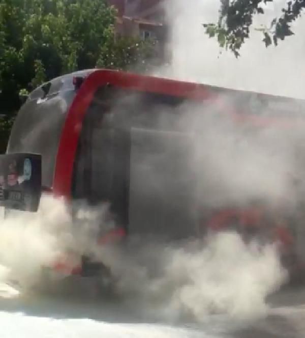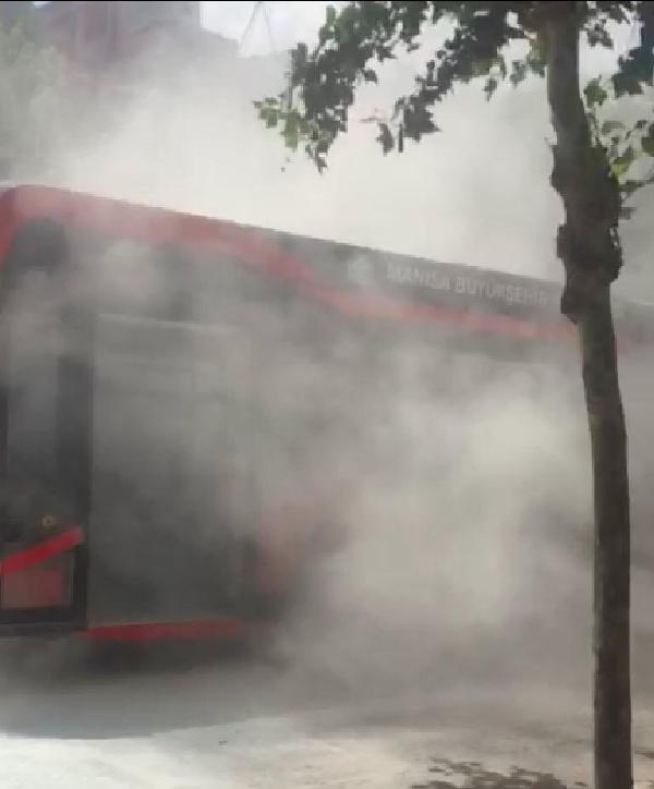 Elektrikli otobüsten çıkan duman korkuttu