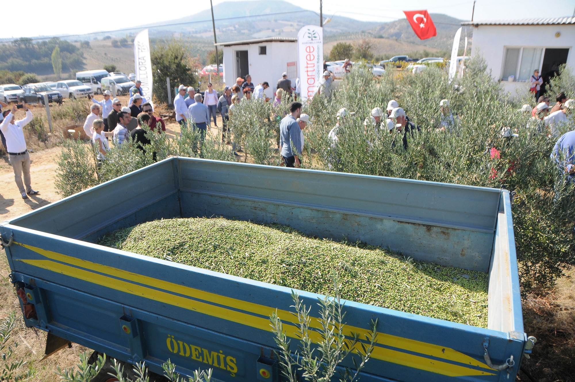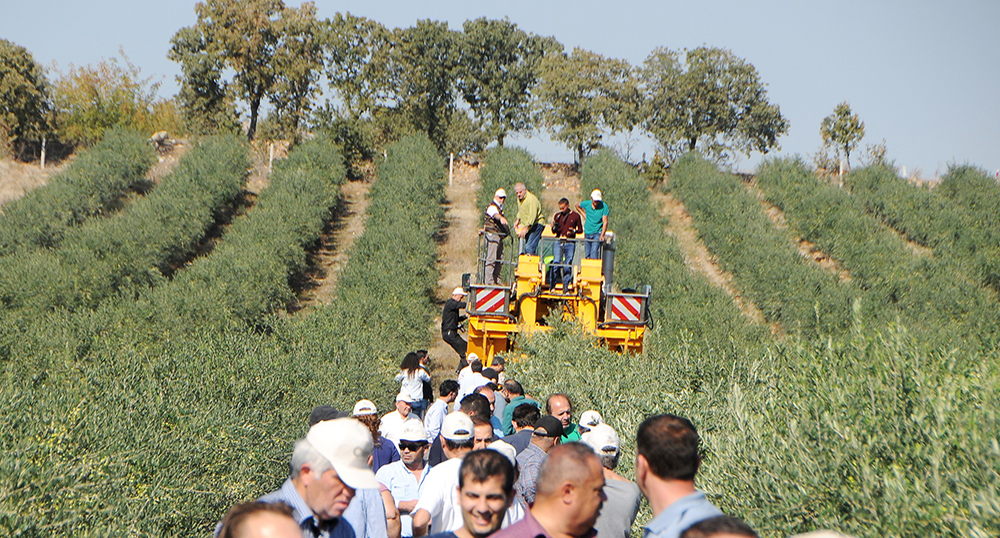 ELLE ZEYTİN TOPLAMAYA DA PAYDOS TÜRKİYE’DE İLK ZEYTİN TOPLAMA MAKİNESİ MANİSA’DA HASAT YAPTIZEYTİNİN İÇERİSİNDEKİ ASİTİ ÇIKMADAN NATUREL OLARAK ÜRÜNÜ ALIYOR ÖTE YANDA DA GÜNLERCE YÜZLERCE İŞÇİNİN YAPTIĞINI BİR GÜNDE YAPIYOR İŞÇİ MALİYETİNİ ORTADAN KALDIRIYOR Ahmet ÜNSAL/ManisaManisa’nın Köprübaşı ilçesinde zeytincilikle uğraşan iki ortak Oğuz Çakır ve Tarkan Karakaya, İspanya’dan aldıkları yaklaşık 250 bin Euro değerindeki zeytin hasat makinasıyla, hem maliyetleri azaltıyorlar, hem zamandan tasarruf sağlıyorlar hem de özellikle zeytinyağında kaliteyi artırıyorlar. Kaptan’ın Çiftliğinde gerçekleşen 2. Hasat Şenliği’ne İstanbul, Bursa gibi illerden birçok yatırımcı katıldı. Hünerli makine zeytinin içerisindeki asiti çıkmadan naturel olarak ürünü alıyor öte yanda da günlerce yüzlerce işçinin yaptığını bir günde yapıyor işçi maliyetini ortadan kaldırıyor.Çiftçiler bu anı ölümsüzleştirmek için Dron kiraladı.Hasatın her anını yerden ve havadan kayda aldırttılar.SADECE ZEYTİNİ HASAT ETMİYOR BADEM VE ÜZÜM VARZeytin makinasının Türkiye’de bir ilk olduğunu belirten Çakır, makinayı 3 yıl önce İspanya’dan getirdiğini söyledi. Arbequına zeytin fidanının çok büyüdüğünü ancak budamaya cevap verdiğini, budandıkça küçük kaldığını ifade eden Çakır, “Bu fidan küçük kaldığı için bu makinaya uygun. 5 yılı geride bıraktık. Bu ağaçlar 4,5 yaşına geldi. 2.80 metreye kadar bizim burada çok ideal. Bizim amacımız birim alanından en yüksek verimi elde edebilmektir. Yağ kalitesini de göreceğiz. İlerledikçe zeytinin boyutu büyüyor. Bu fidan düz ve az eğimli alanlara ekiliyor” dedi.Kabaca 1 dönümü 10 kişinin topladığını hesapladıklarını dile getiren Çakır, “Biz bu aletle 1 günde 40-50 dönümü topluyoruz. Yani 400-500 işçinin yaptığını bir günde yapıyor. Doğal olarak maliyetleri de çok düşürüyor. Bölgemizde en büyük sorun işçiliktir. İşçilik başlı başına bir sorun. Burası yağlık bir zeytin çeşididir genellikle. Yüzde 10 ila yüzde 30 arasında zeytinler morlaşmaya başladığında yağlık için ideal zaman oluyor. O dönemlerde toplayabilmek için işçiyle bunu yapamıyorsunuz. Doğal olarak üretilen zeytinyağlarının kalitesinin düşük olmasının nedeni budur. Biz böylece istediğimiz en ideal zamanda tüm ürünü topluyoruz. Topladıktan sonra anında sıkmaya gönderiliyor. Yağda asitleşme olmuyor, kalite kaybolmuyor. Yağ kalitesini inanılmaz bir şekilde üst seviyeye çekiyor. Ağaçları bu boyutta tutarak, bakımını da yapmışı oluyoruz. Biz ancak bu şekilde İspanya ile mücadele edebiliriz” diye konuştu.Çakır, dünyada üretilen zeytinin yüzde 80’inin bu cinsten üretildiğini kaydederek, bu durumun Türkiye’de çok çok az olduğunu söyledi. Çakır, bu makinanın maliyetinin 200 bin ila 250 bin Euro arasında değiştiğini vurguladı. Çakır, iki zeytin aralığının 3,75 metrekare olması gerektiğini belirtti. Zeytinde makinalı hasadın günden güne yaygınlaşması gerektiğini belirten Manisa Gıda Tarım ve Hayvancılık İl Müdürü İsmail Kaya, işçi masrafının çok fazla olduğunu söyledi. Kaya, zeytin bahçelerinin makinalı hasada pek uygun olmadığını kaydeden Kaya, kentsel dönüşüm gibi makinalı hasada dönüşüm olması gerektiğini ya da yeni kurulacak olan bahçelerin bunu uygun olması gerektiğini söyledi. Uluslararası Tadım Uzmanı Birsen Can Pehlivan, katılımcılara zeytinyağı tadım eğitimi verdi. Konuşmaların ardından zeytinler makinayla hasat edildi. Hasat edilen zeytinler traktöre yüklenerek yağ sıkmaya götürüldü. Bazı vatandaşlar ise elle hasat etti.