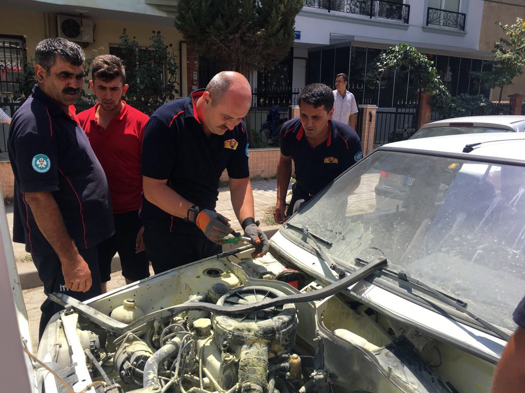 Manisa’nın Turgutlu İlçesinde seyir halindeki otomobil alev aldı. Yangını çevredeki işyerinde bulunan vatandaşlar tarafından söndürüldü.Olay bugün Turgutlu İlçesi Eski Hal sokak üzerine meydana geldi. Kaan C. yönetimindeki 45 ZB ... plakalı otomobil Eski Hal sokağında seyir halinde iken motor aksamında bir anda alevler yükselmeye başladı.Alevleri gören çevredeki esnaf itfaiyeye haber vererek ,yangın söndürme tüpüyle müdahale ederek aracın tamamen yanmasını önledi. 3 bin liralık maddi hasarın meydana geldiği olayda sürücü Kaan C. “ Otomobil içinde yalnızdım. Birden kokular gelmeye başladı. Otomobilimi durdurduğumda motor kaputu altından alevler yükselmeye başladı. Allah’tan esnaf arkadaşlar müdahale ederek emanet aldığım arabanın tamamen yanmasını öneldi.Demek ki iyi insanlarda varmış "diye konuştu.DOĞAN ÇİZMECİ
