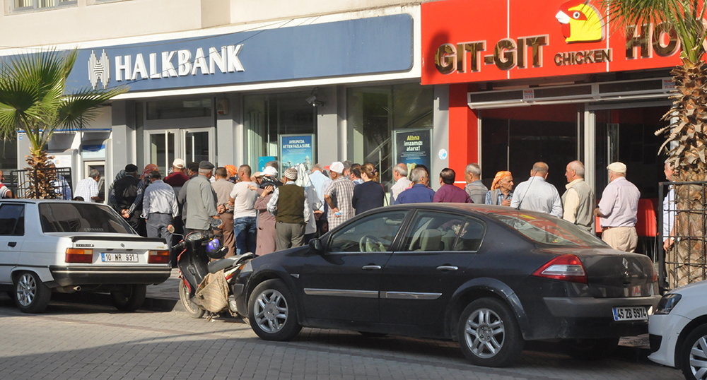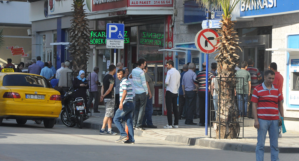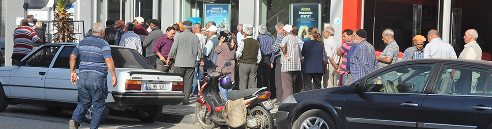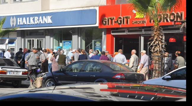 Emekli maaşı için kuyrukKurban bayramı öncesi ödenecek olan emekli maaşları için vatandaşlar erken saatlerde banka önlerinde kuyruklar oluşturmaya başladı.Sabahın saat 07 .00 de bankalar önünde sıraya giren emekli Hüseyin Akay : “ Emekli maaşımı çekip, bayram alışverişi yapacağız. Kimilerimiz de borçlarımı ödeyecek. Ne yapalım ?Sıcak altında bankanın açılmasını bekliyoruz. Ahmet Özpehlivan