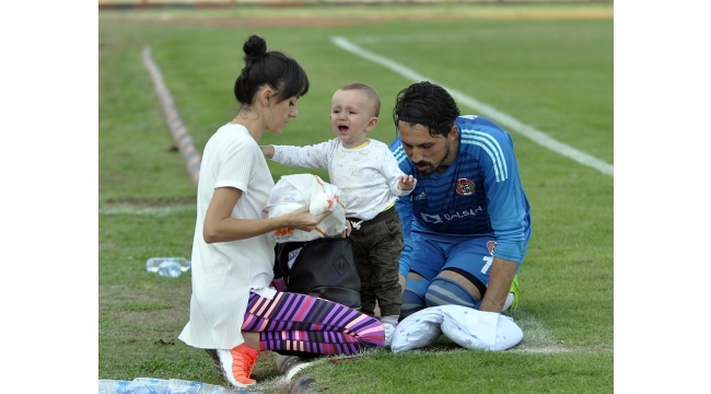 Muğlaspor'u evinde 1-0 yenerek düşme hattından çıkan Turgutluspor'da kaleci Cihan Şentürk, 90 dakikanın ardından kaleci formasını bile çıkarmadan babalık görevini yerine getirdi. Kritik maçın ardından takım arkadaşlarıyla sevinç yumağı olan 30 yaşındaki file bekçisi, önce sevincini sahaya inen eşi Tuğba ve 15 aylık oğlu Recep Tuğra'yla paylaştı ardından saha içinde oğlunun ihtiyacını karşılayan eşine yardım etti.TFF 3.Lig 3.Grup’ta Turgutluspor’un kalesini koruyan Cihan Şentürk’ün (30) maçtan sonra ailesiyle beraber gösterdiği davranış diğer futbolculara örnek olurken, görenlerin de takdirini toplamaya devam ediyor. Turgutluspor’un iç sahada oynadığı maçları tribünden izleyen kaleci Cihan’ın eşi Tuğba Şentürk ve 15 aylık oğlu Recep Tuğra Şentürk maçın hemen bitiminde sahaya inerek alınan sonucun sevincini de, hüznünü de birlikte yaşıyorlar.