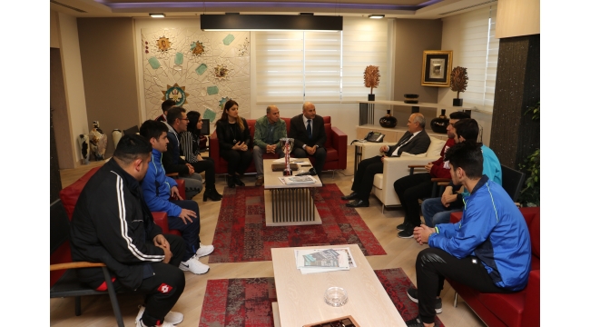 3 Aralık Dünya Engelliler Günü dolayısıyla Manisa’daki engelli derneklerinin temsilcileri Manisa Büyükşehir Belediyesi’ne ziyarette bulundu. Engelli derneklerinin temsilcilerini Manisa Büyükşehir Belediyesi Başkanvekili Mümtaz Kahya makamında kabul etti. Manisa Büyükşehir Belediyesi Başkanvekili Mümtaz Kahya, 3 Aralık Dünya Engelliler Günü dolayısıyla Manisa’daki engelli derneklerini makamında kabul etti. Dünya Engelliler Günü dolayısıyla Başkanvekili Mümtaz Kahya ilk olarak makamında Manisa Bedensel Engelliler Derneği Başkanı Yasemin Yıldız, yönetim kurulu üyeleri ve dernek üyelerini ağırladı. Dernek Başkanı Yıldız, engellilerin yaşadıkları sıkıntılar hakkında bilgi verirken, engellilere yönelik Manisa Büyükşehir Belediyesi’nin yaklaşımından dolayı Manisa Büyükşehir Belediyesi ve Büyükşehir Belediye Başkanı Cengiz Ergün’e teşekkürlerin ileterek çiçek takdim etti. Başkanvekili Mümtaz Kahya daha sonra Altı Nokta Körler Derneği Başkanı Hüseyin Pehlivan ve dernek üyeleriyle bir araya geldi. Dernek çalışmaları hakkında bilgiler veren Pehlivan, Büyükşehir’in kendilerinin her zaman yanında olduğunu söyledi ve teşekkür etti. Başkanvekili Mümtaz Kahya, Sağır ve Dilsizleri Koruma Kalkındırma Eğitim Kültür Gençlik Spor Derneği Başkanı Muhammet Fidan, Yönetim Kurulu Üyeleri ve sporcular ile de bir araya geldi. İşitme Engelliler Futbol İkinci Ligi’nde kazandıkları şampiyonluk kupaları ile birlikte gelen dernek yönetimi, dernek faaliyetleri hakkında da bilgiler verdi. “Engellilerimizin Yanında Olmayı Sürdüreceğiz”Manisa Büyükşehir Belediyesi olarak her zaman engellilerin yanında olduklarını ve olmaya devam edeceklerini söyleyen Manisa Büyükşehir Belediye Başkanvekili Mümtaz Kahya, Manisa Büyükşehir Belediyesi’nin engelli dernekleri ile bir arada olduğunu ve engelli dostu şehir yaratmak adına çalışmalara ara verilmeden sürdürüleceğini de dile getirdi.