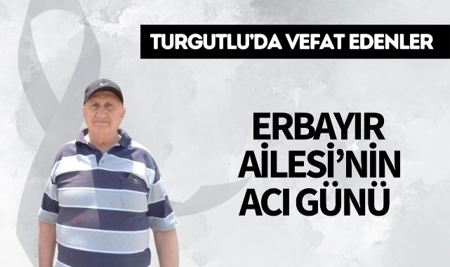 Erbayır Ailesi’nin Acı GünüTURGUTLU İlçesi sakinlerinden merhum Giritli Süleyman Erbayır’ın oğlu İbrahim Erbayır (69) hakkın rahmetine kavuştu. Cenazesi bugün ikindi namazına müteakip Pazar Camii’nde kılınacak cenaze namazının ardından eski kabristanda toprağa verilecek.Yakınları: kızı Nuriye Akdemir, oğlu İsmet Erbayır, enişteleri Hasan Çizmeci, Ali Sazcılar, kardeşleri Hatice Sazcılar, Nezahat Çizmeci, Aysun ErbayırMerhuma Allah'tan rahmet, yakınlarına başsağlığı dileriz.