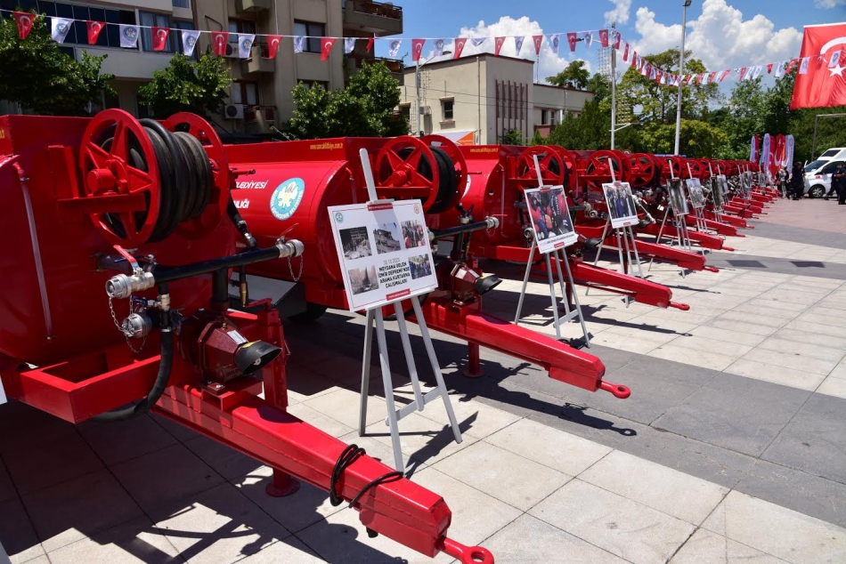 Göreve geldiği ilk günden itibaren Manisa’ya en güzel hizmetleri verebilmenin çabası içerisinde olduğunu dile getiren Başkan Ergün, “Hemşerilerimizden aldığımız olumlu geri dönüşler ve gösterdikleri teveccüh, yaptığımız çalışmaların ne kadar doğru olduğunu gözler önüne seriyor. Dünya çapında olaylara müdahale süresiyle rekor kıran, çok sayıda hayat kurtaran, canları pahasına görevlerinden ödün vermeden özveriyle çalışan itfaiyemize; amirlik ve müfreze noktaları ile birlikte modern araç, ekipman ve ihtiyaç duyulan tüm malzemelerin temin edilmesi için büyük hassasiyet gösterdik. İtfaiye hizmetlerimiz, Manisa il genelinde 56 noktada başarılı bir şekilde yürütülüyor. İlçe merkezlerimize ve müfreze binalarımıza uzak olan bölgelere de ilk müdahaleyi sağlayacak İtfaiye Su Tankerlerimizi, muhtarlarımız marifetiyle hizmete sunuyoruz. Hatırlayacağınız üzere, daha önce İtfaiye Su Tankerlerinden 78 adedini muhtarlarımıza dağıtmıştık. Bugün de 20 tanker daha veriyoruz. Böylece toplamda 98 adet tankeri mahallelerimize ulaştırmış olacağız. Buradaki amacımız; olası bir yangının muhtarlarımıza bildirilmesinin ardından yangına hemen müdahale etme imkanı sağlamaktır. Manisa il genelindeki 56 adet itfaiye binamız ve 98 adet itfaiye su tankerimiz sayesinde toplamda 154 noktadan müdahale hızlıca yapılarak can ve mal kayıplarının önüne geçmiş olacağız. Yüce Allah kullanmayı nasip etmesin. Bunu hep söylerim. Ancak hayatın gerçekleri de ne yazık ki kaçınılmaz” ifadelerinde bulundu.