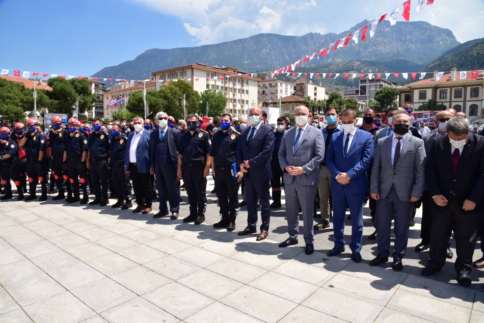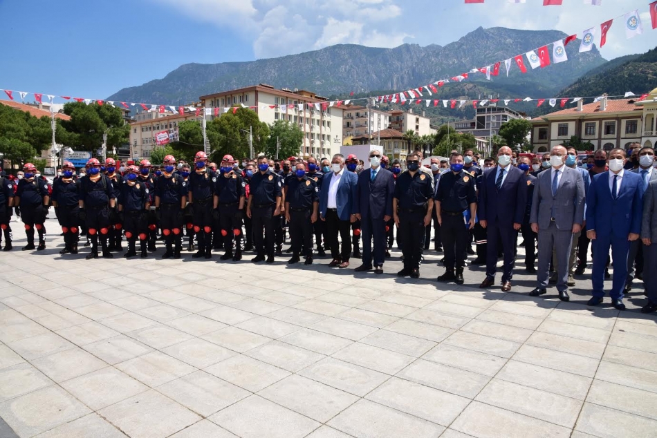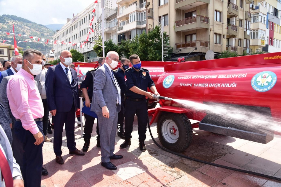MANİSA Büyükşehir Belediyesi tarafından İtfaiye Dairesi Başkanlığı bünyesine alınan teknolojik itfaiye ekipmanlarının tanıtımı, 20 adet itfaiye su tankerinin teslimi ve personele rütbe tevdi töreni Cumhuriyet meydanında düzenlendi. Törene; Manisa Büyükşehir Belediye Başkanı Cengiz Ergün, MASKİ Genel Müdürü Ramazan Burak Aslay, Manisa Büyükşehir Belediyesi Genel Sekreter Yardımcıları Ali Öztozlu ve Uğur Başkal, MASKİ Genel Müdür Yardımcıları Gökhan Çevik ve Emre Özünlü, Ülkü Ocakları İl Başkanı Nazmi Akçay, MHP Yunusemre İlçe Başkanı Buğra Çelikkanat, MHP Şehzadeler İlçe Başkanı Şener Özten, Manisa Kent Konseyi Başkanı Ahmet Karadağ, Büyükşehir Belediyesi ve MASKİ Daire Başkanları, şube müdürleri, Büyükşehir Belediyesi Meclis Üyeleri, mahalle muhtarları ve görevli personeller katıldı. Tören, Saygı duruşunda bulunulması ve İstiklal Marşı’nın okunmasıyla başladı. Daha sonra Manisa Büyükşehir Belediye Başkanı Cengiz Ergün, bir konuşma yaptı.