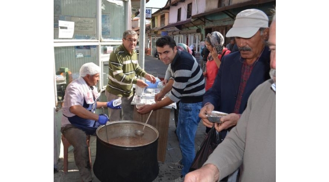 Esnaf aralarında imece usulü topladıkları malzemelerle 2 bin kase aşure yaptırıp, dağıttı.