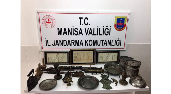 Manisa İl Jandarma Komutanlığı Kaçakçılık ve Organize Suçlarla Mücadele Şube Müdürlüğü ekipleri, istihbarat çalışmasıyla, Saruhanlı ilçesi Sarıçam Mahallesi'nde yaşayan H.Ö. (62) ve M.Ö.'nün (70) evi ile eklentilerinde tarihi eser bulunduğu bilgisine ulaştı. Bugün saat 14.00 sıralarında harekete geçen jandarma, şüphelilerin evine operasyon düzenledi. Evin ahır olarak kullanılan bölümünün zemininde Roma dönemine ait taban mozaiği, Osmanlıca yazılı olduğu değerlendirilen çerçeve içerisinde toplam 3 belge, Bizans dönemine ait 1 küçük kazan, 1 kılıç, 2 kama, 2 barutluk, 2 metal sahan, 1 metal tabak, 2 metal yağdanlık, 1 kapı tokmağı, 1 sahan kapağı, 1 kapaklı ve kulplu bakraç, 3 kirkit, 1 prinç kandil, 1 ütü, 2 halı makası, 1 kapaklı ve kollu kahve değirmeni, 2 boş kovan ile kaçak kazıda kullanıldığı belirlenen 2 kürek ele geçirildi. H.Ö. ve M.Ö. gözaltına alındı. Ele geçirilen tarihi eserler Manisa Müze Müdürlüğü'ne teslim edilirken, şüphelilerin jandarmadaki işlemlerinin sürdüğü bildirildi.HABER MERKEZİ
